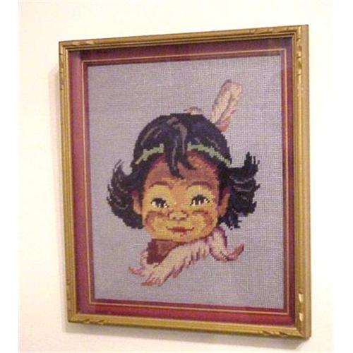 Beautiful vintage picture, Depicting pretty Native Baby-girl and this is done in a lovely high quality needlework, Wonderful colors! - Framed in gorgeous gold and mahagony wood frame Professionally Framed and it Measures about 14" x 12" - Very good condition - Free of damage - U.S. buyers to pay 8.00 for ship. plus insce if desired. - We prefer Paypal or Money Order - Thank You very much for looking!