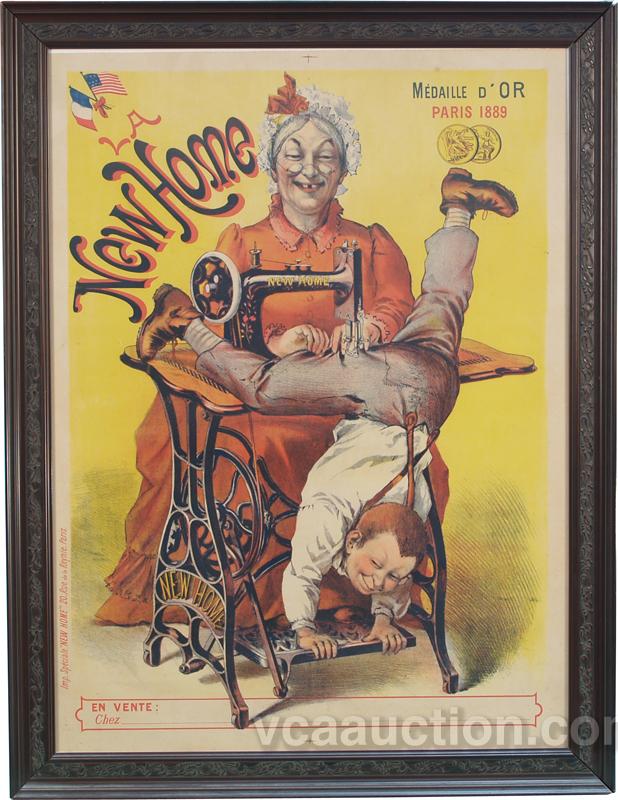 Large New Home Sewing Machine Paper Sign "Paris 1889" in frame - 28" x 36"
