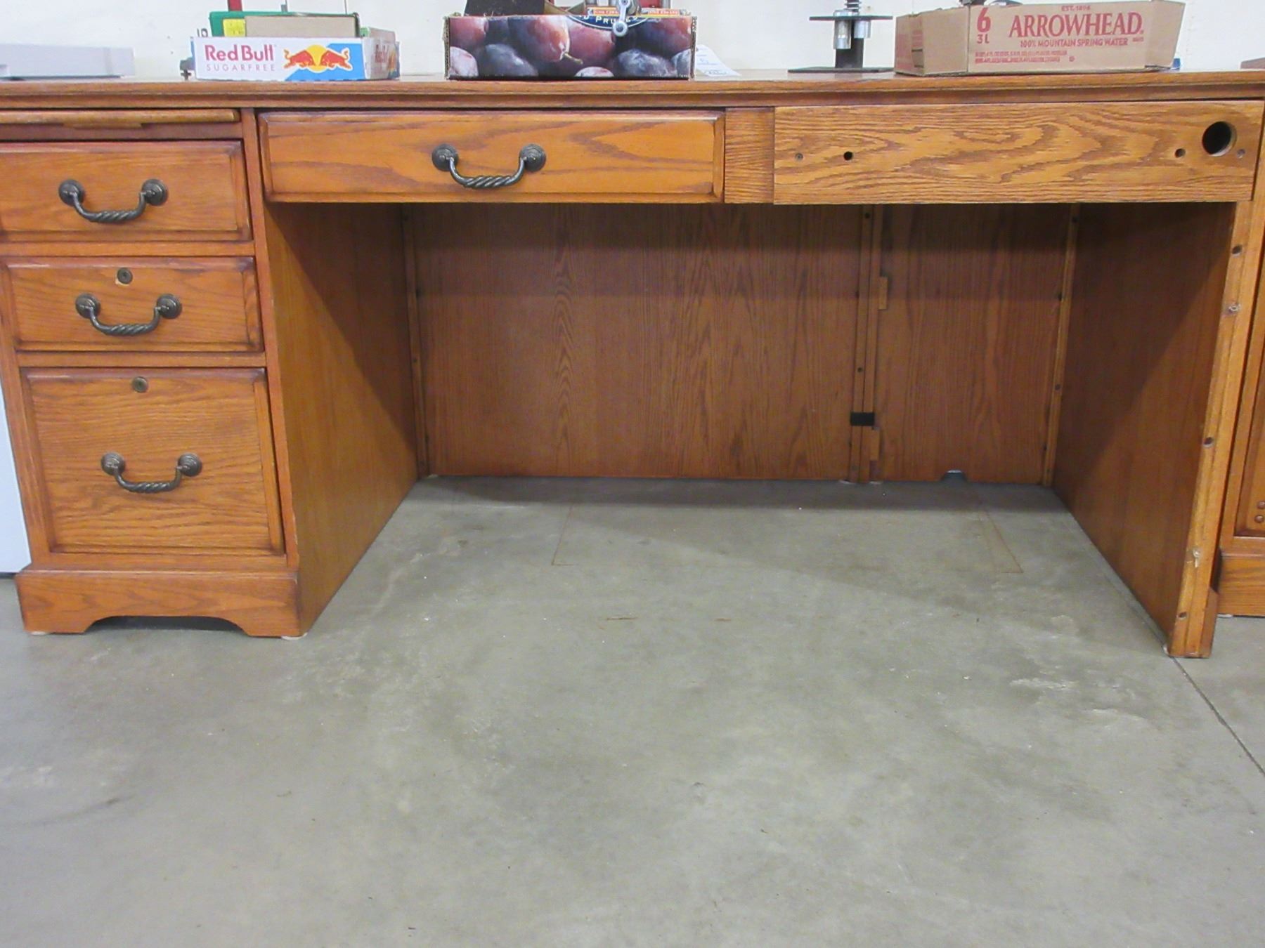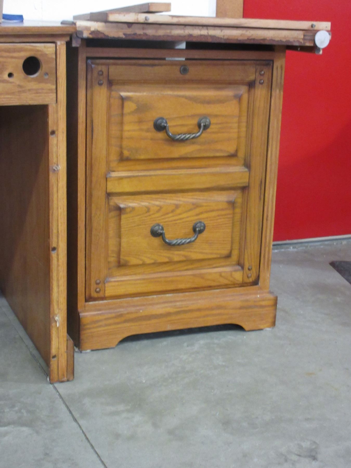 Large Oak Desk With Side Computer Cabinet- Very Good Condition
