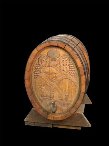 Large Oak Wine Cask w/ fancy Carving & Spigot