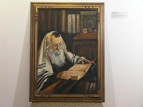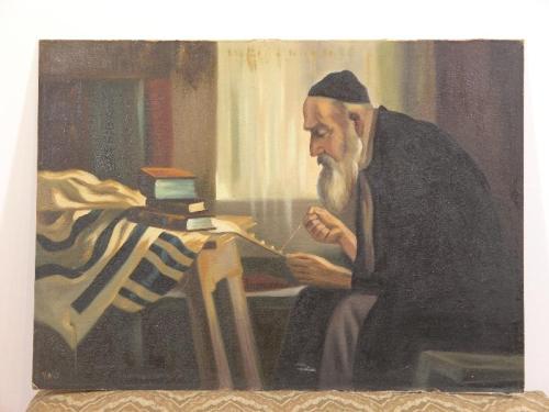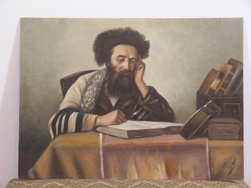 Moshe, Ben. Rabbi Studying, /s/ l.r., oil on board, very good condition, 42" by 31"