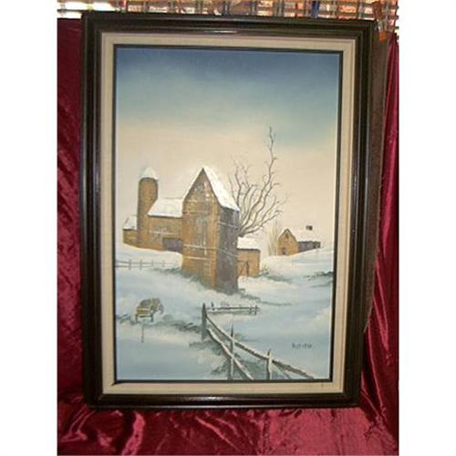 Large Oil on Canvas by Hoffman. A very nice winter snow scene of farm house and a lot of snow and landscape. Very nicely done and shows a lot of talent and will look great anywhere you hang it. Shows class and very colorful one. Reminds me of home when it snows. It is 43" L X 31" W frame, and it has a very nice matted wooden frame as you can see. Hope you like it to.