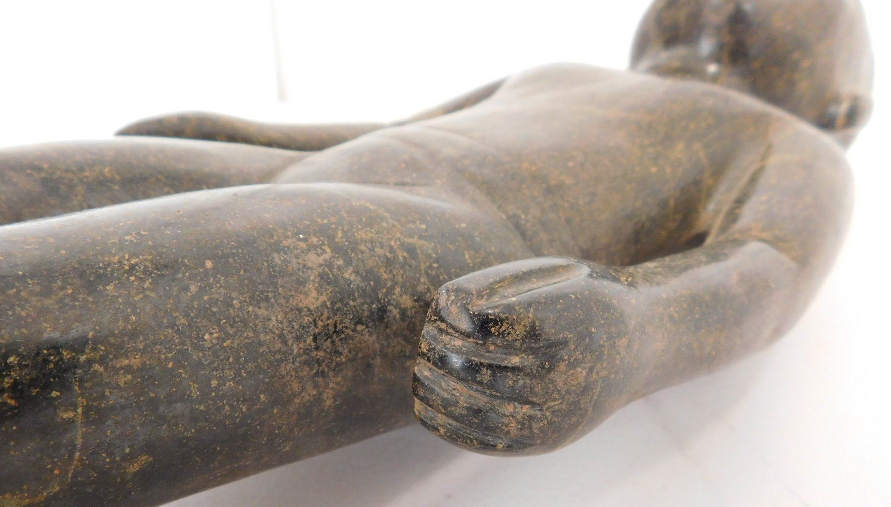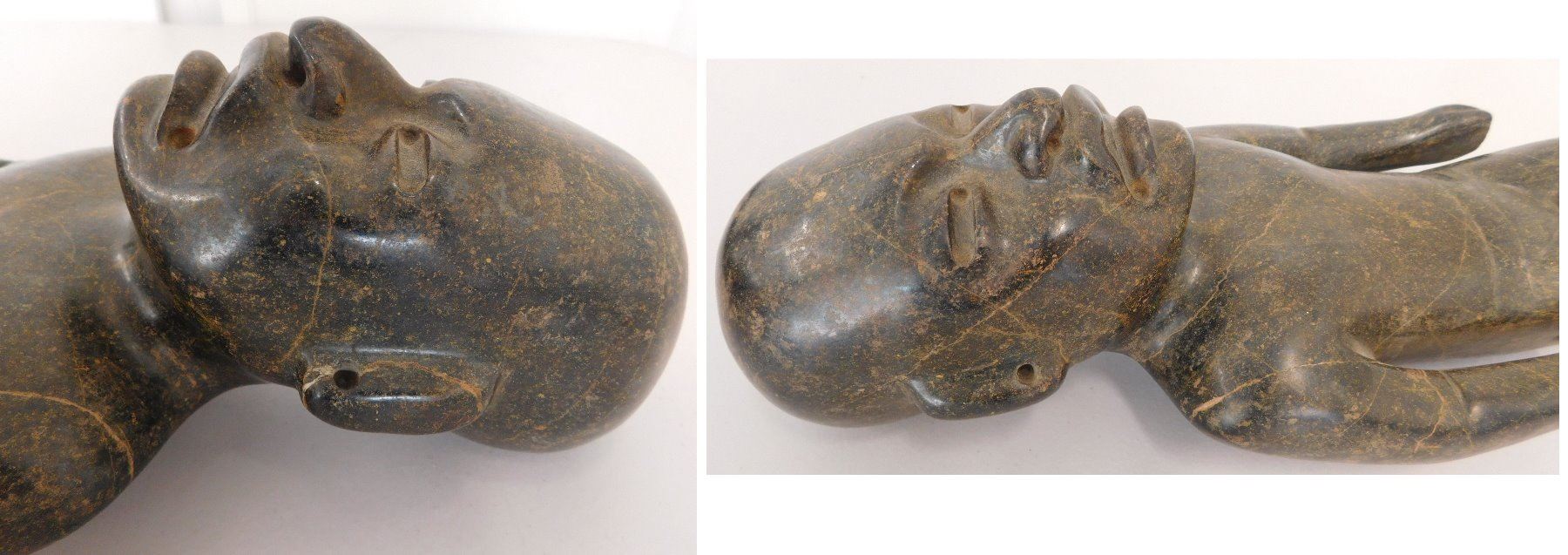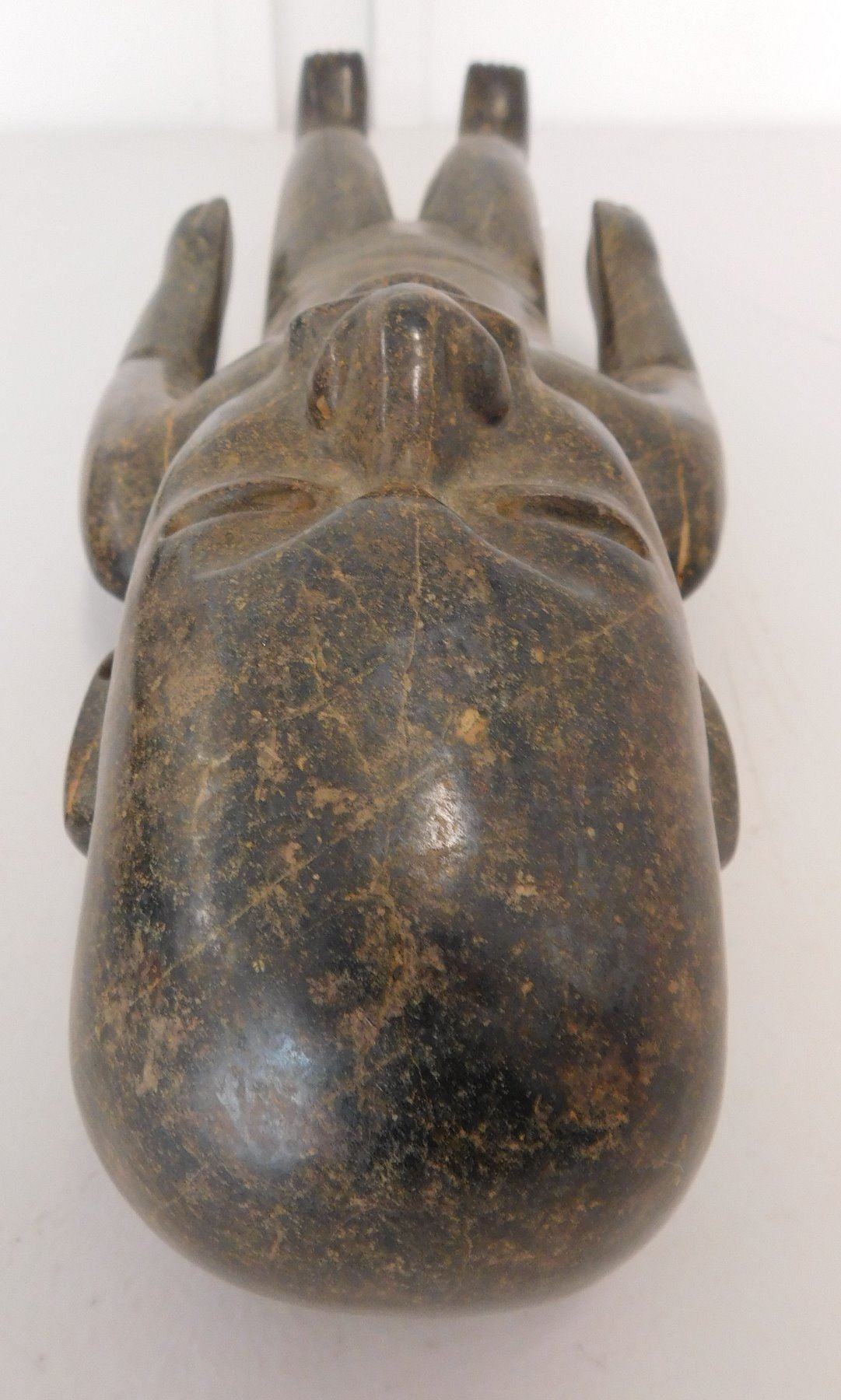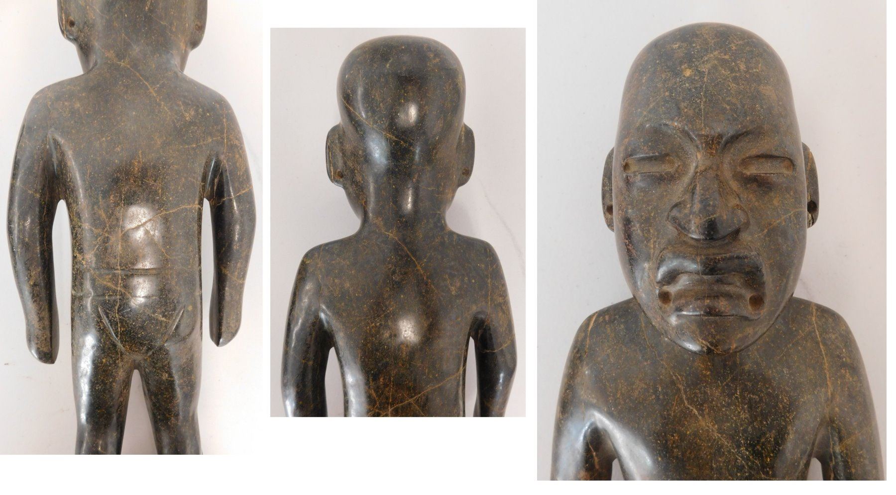 Large Olmec Figure w/John Jordan COA, pre-Columbian item. Made of jadeite, the item measures 6 1/2" x 5" x 18 3/4". Veracruz, Mexico. Has ancient cracks. Transformation-style mouth. From an old, 1960s California collection. John R. Jordan Certificate of Authenticity. Condition: Good, as found, see images. Shipping: $80.00 USA estimate only, USPS Registered Mail, w/insurance and signature, double-boxed.