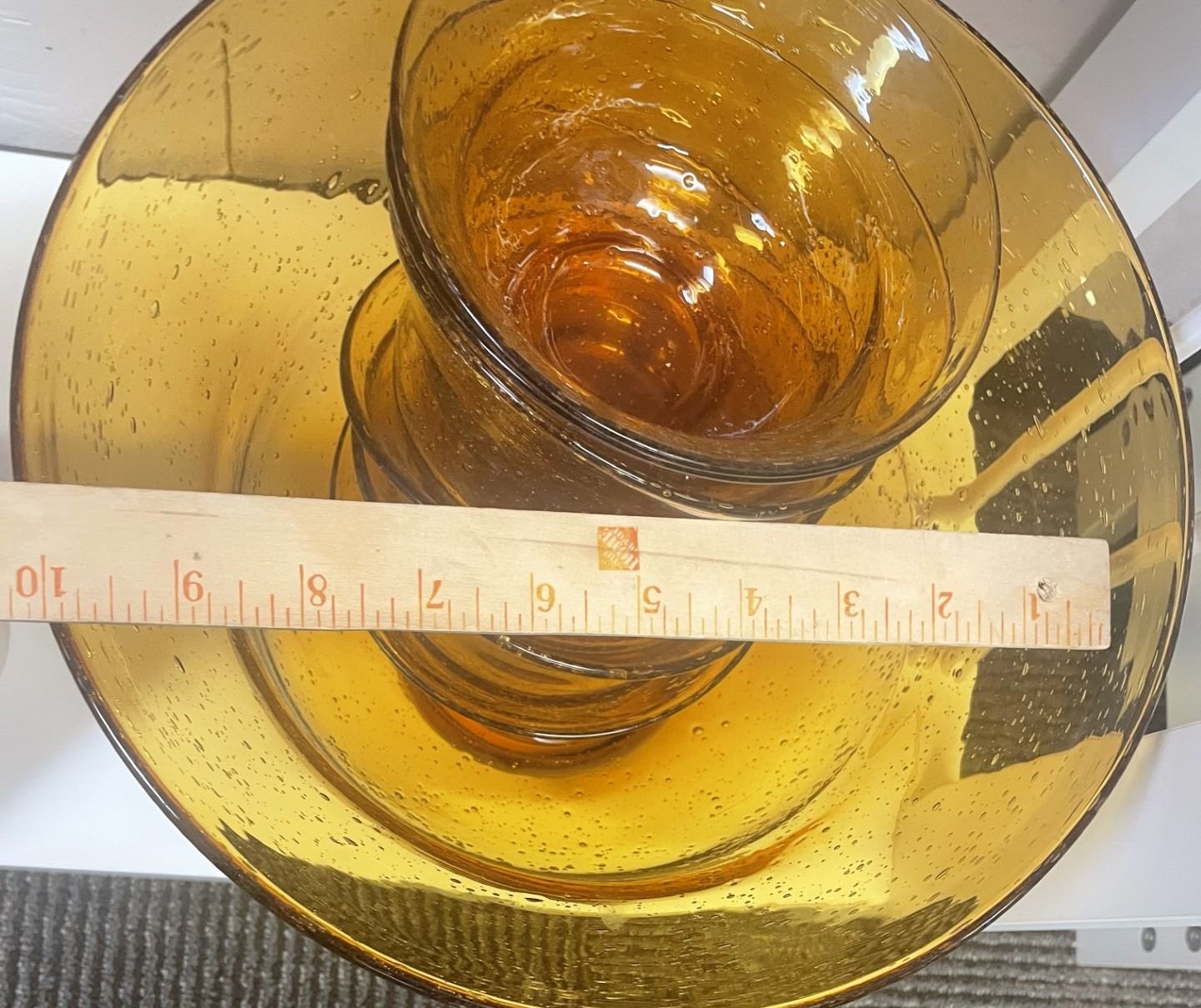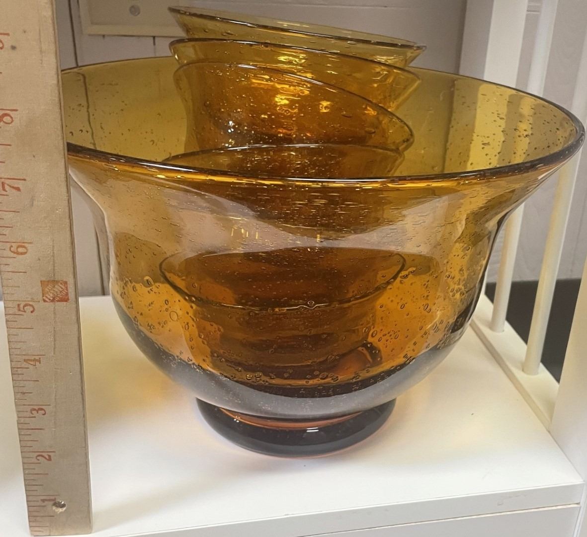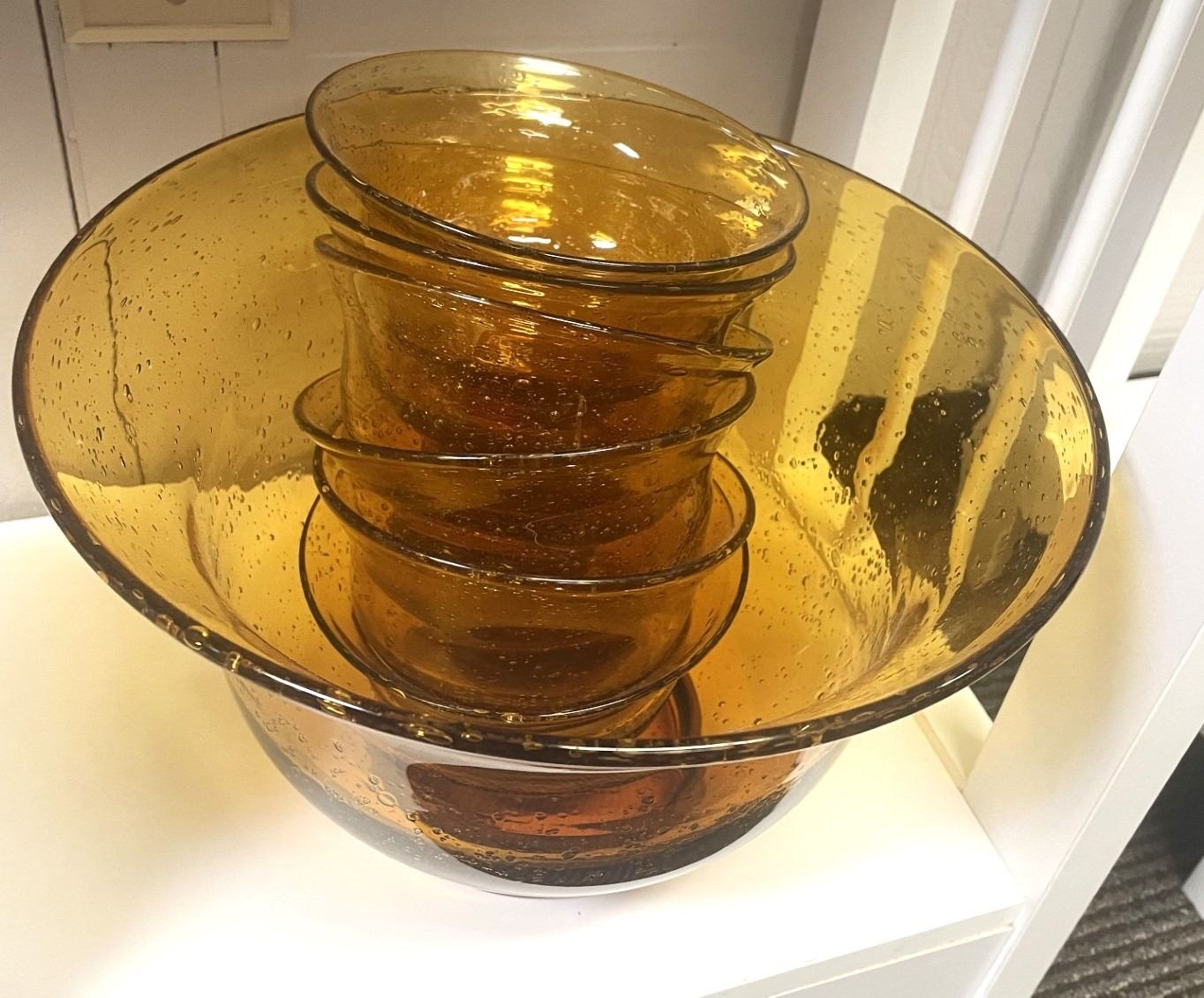 Large Orange Glass Bowl and 6 serving bowls