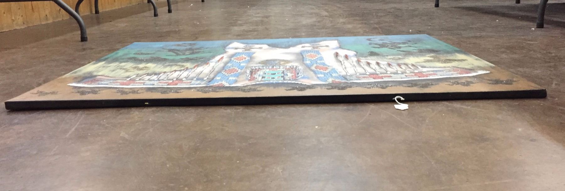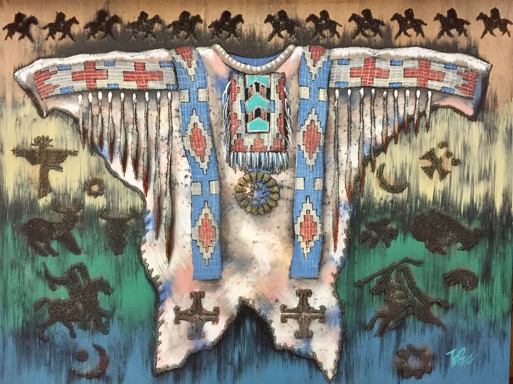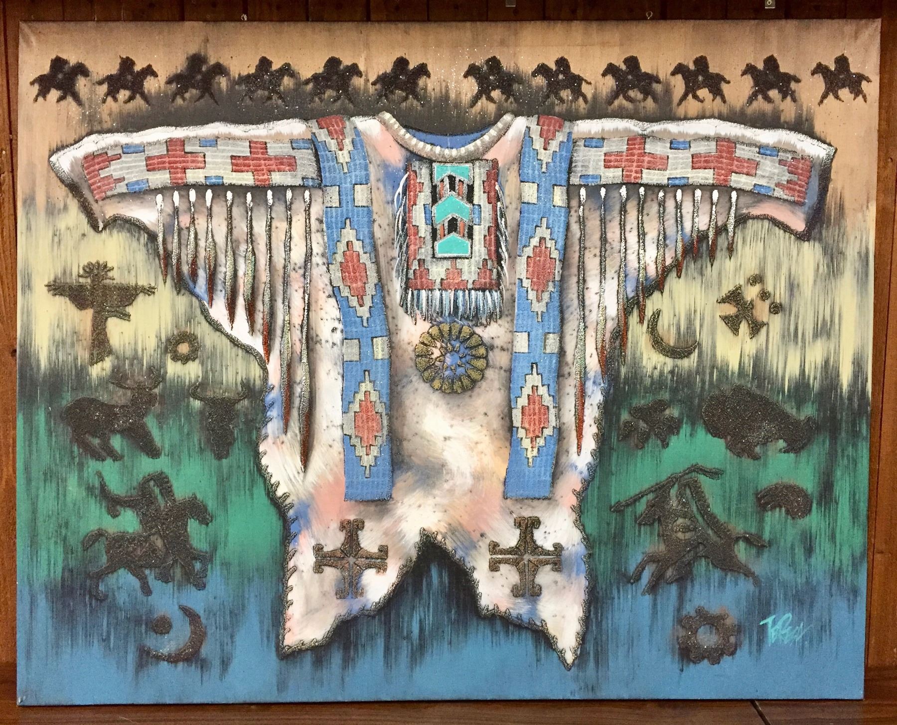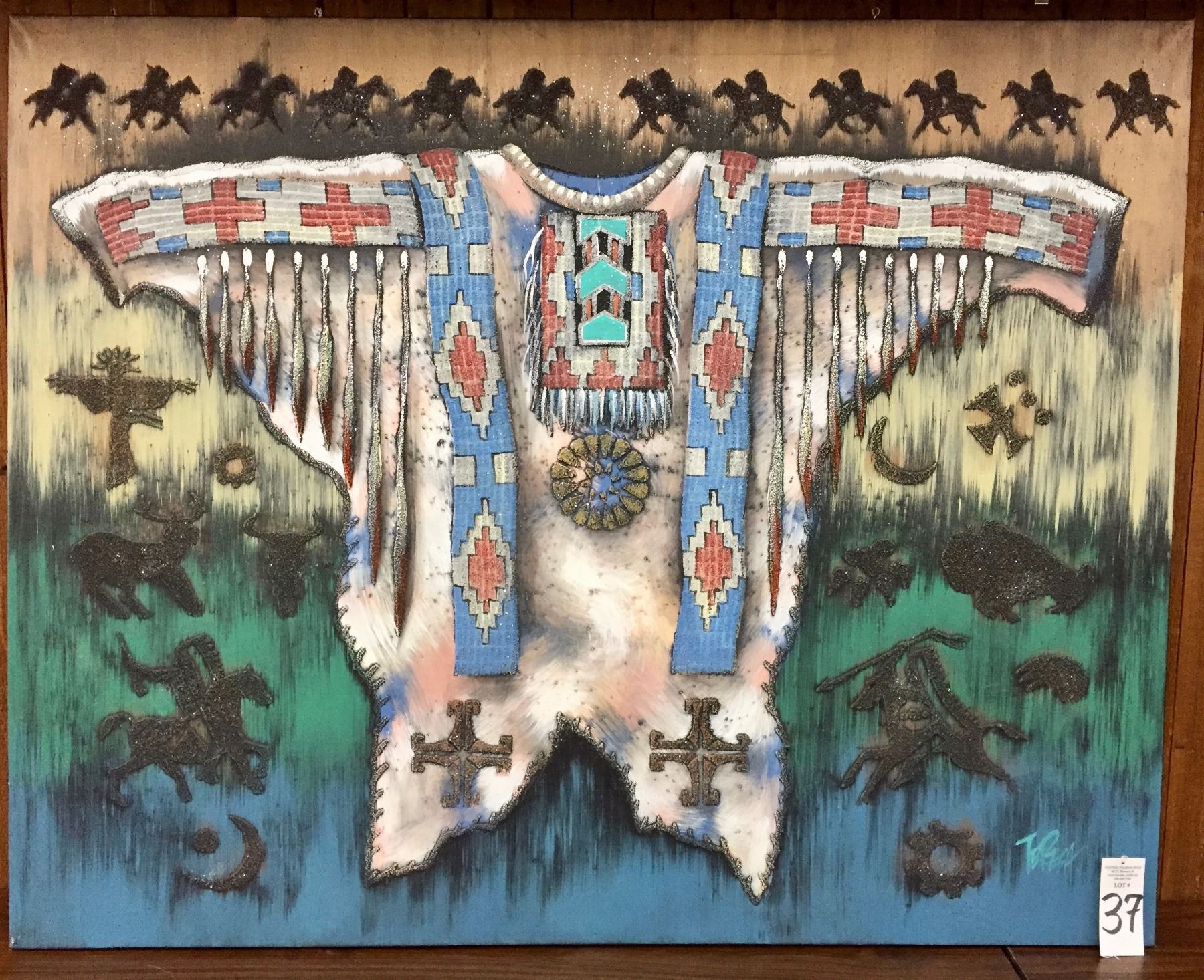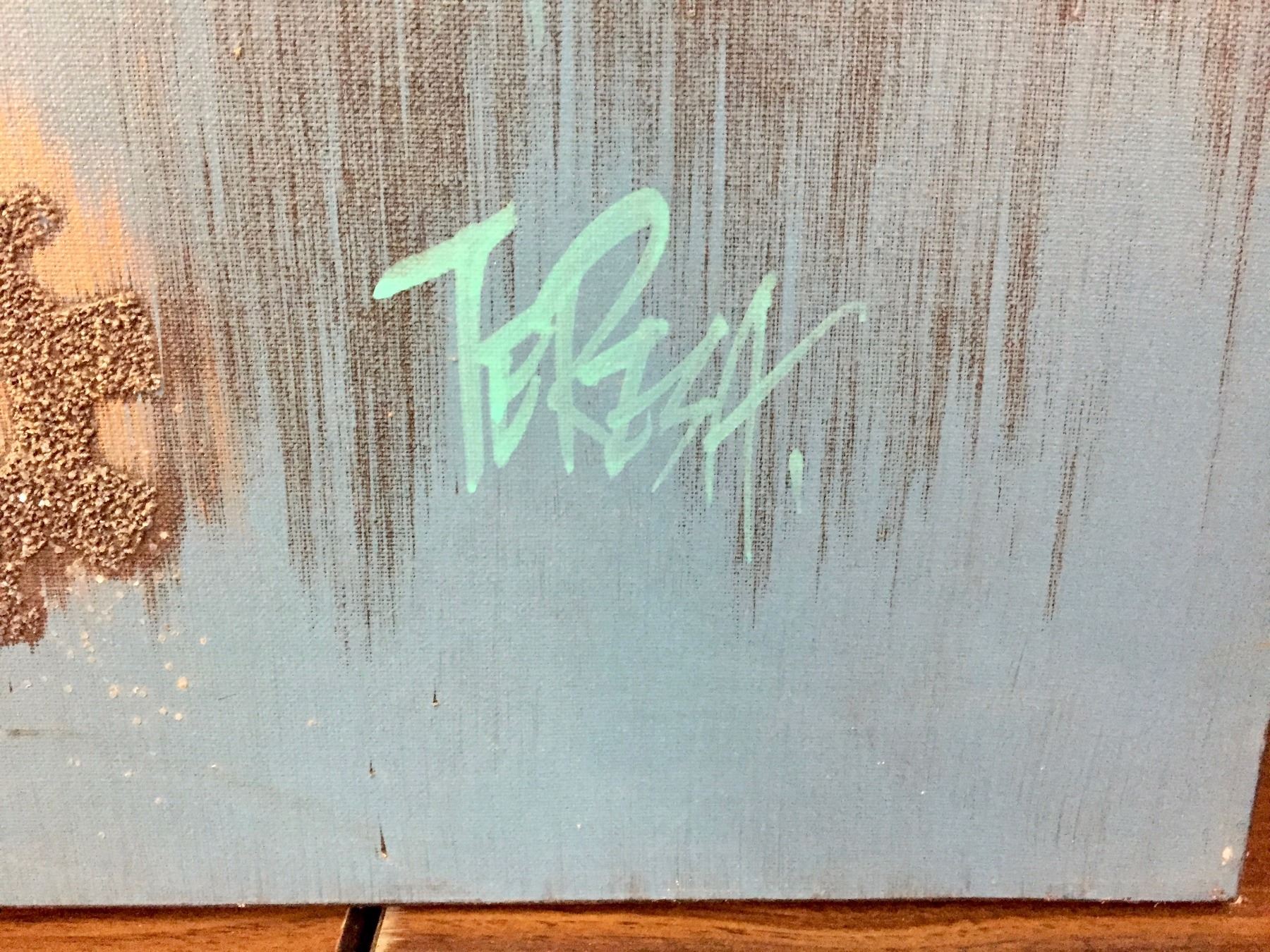 Description: Original oil painting with additional mixed media embellishments. Maker: Signed with what looks like, Teresa? - artist unknown. Approx. Age: Fairly modern. Size: 50”w x 40” tall Condition: Good for its age, normal wear expected. Please look closely at the pictures - they are an important part of our description. Shipping: There will be a $15 handling / packaging fee for shipping this lot. The actual cost of postage will be added on top of that.