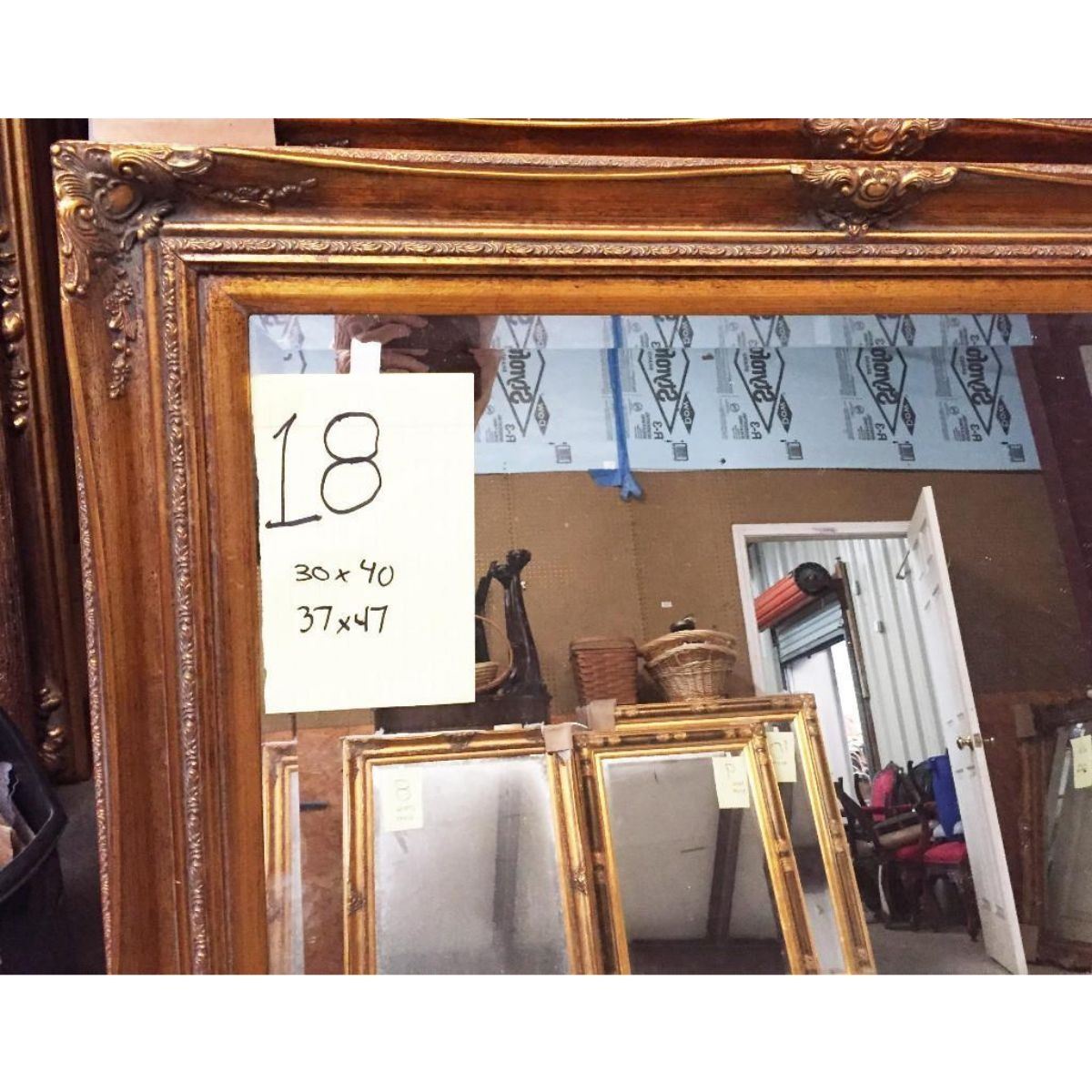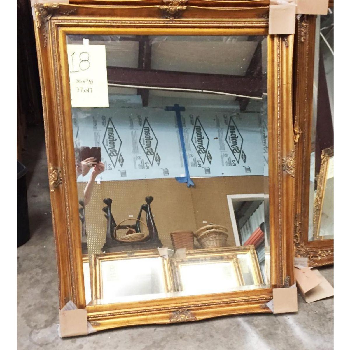 Large size, gilt over hand-carved solid wood ornate frame inset with beveled mirror glass. 30" x 40" glass. Overall size 37" x 46". **** this is a heavy weight item requiring special shipping arrangements.