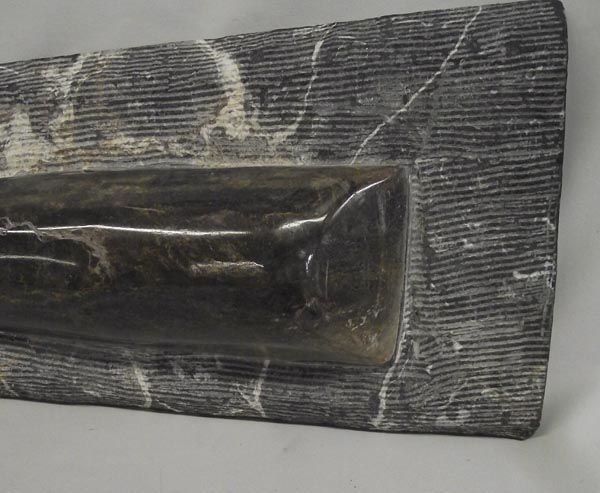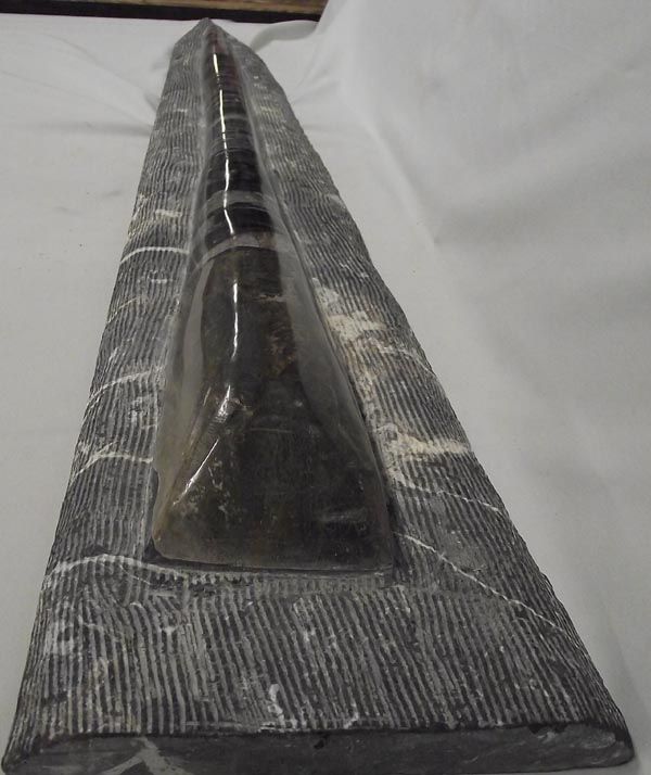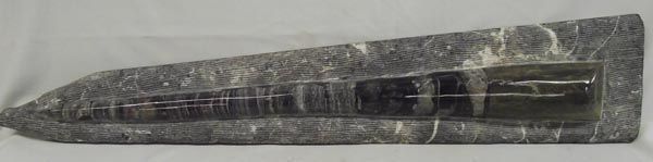 Large Orthoceras Fossil. Measures approx. 37''L x 7 1/2''W. Very heavy.