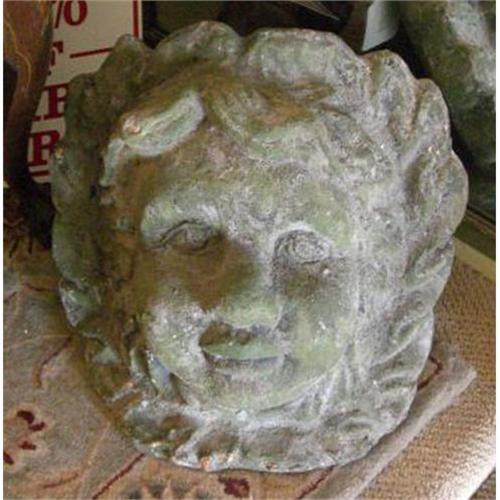 Large Cherub Face Planter with moss patina. Shipping quote available with zip code.
