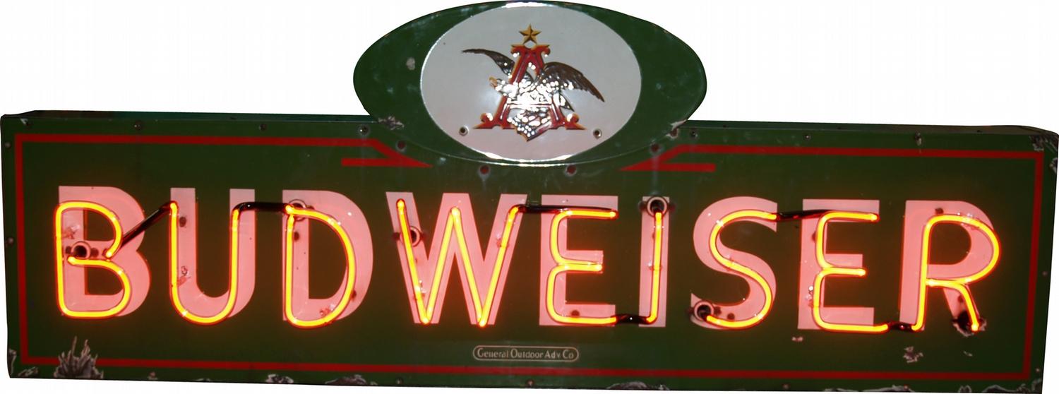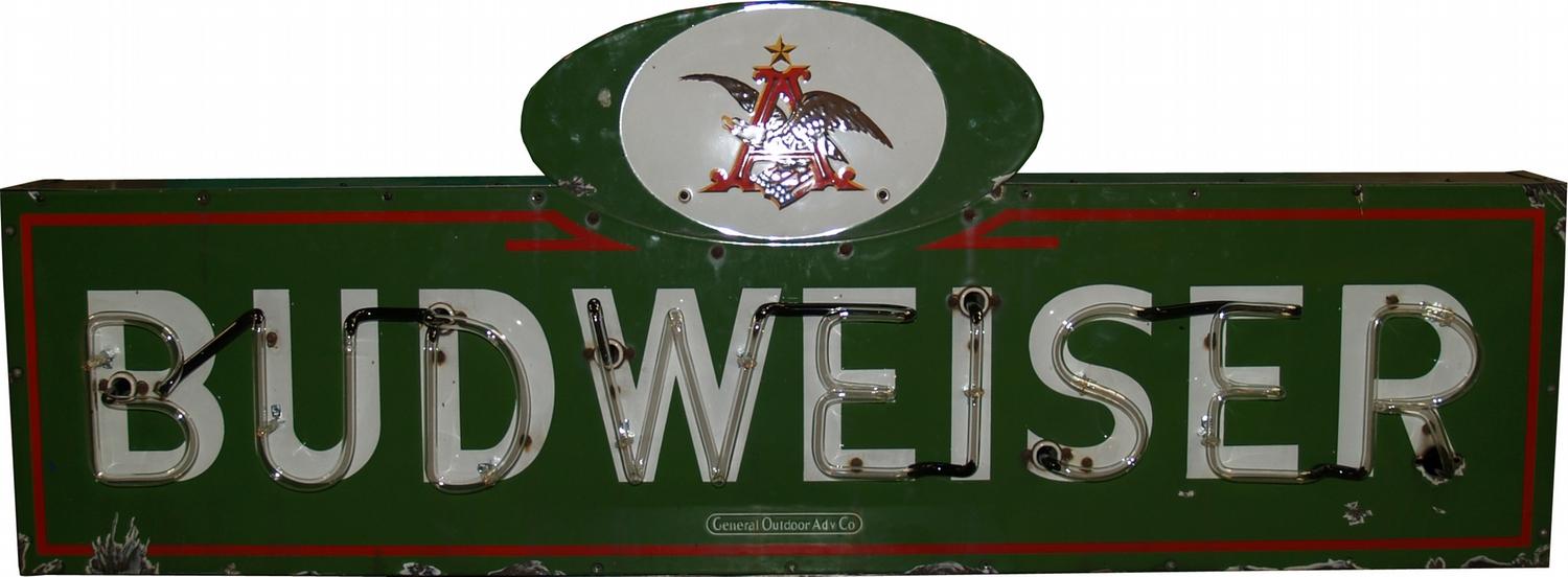Large Outdoor Die-Cut Porcelain "Budweiser" Sign w/neon by General Outdoor Adv. Co. - 72" x 27"