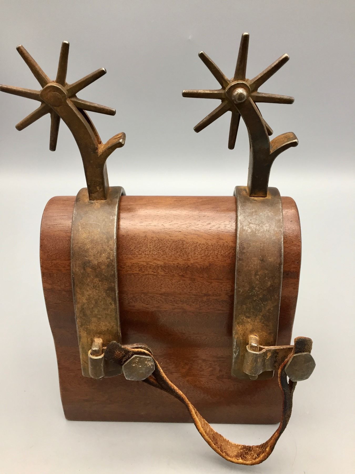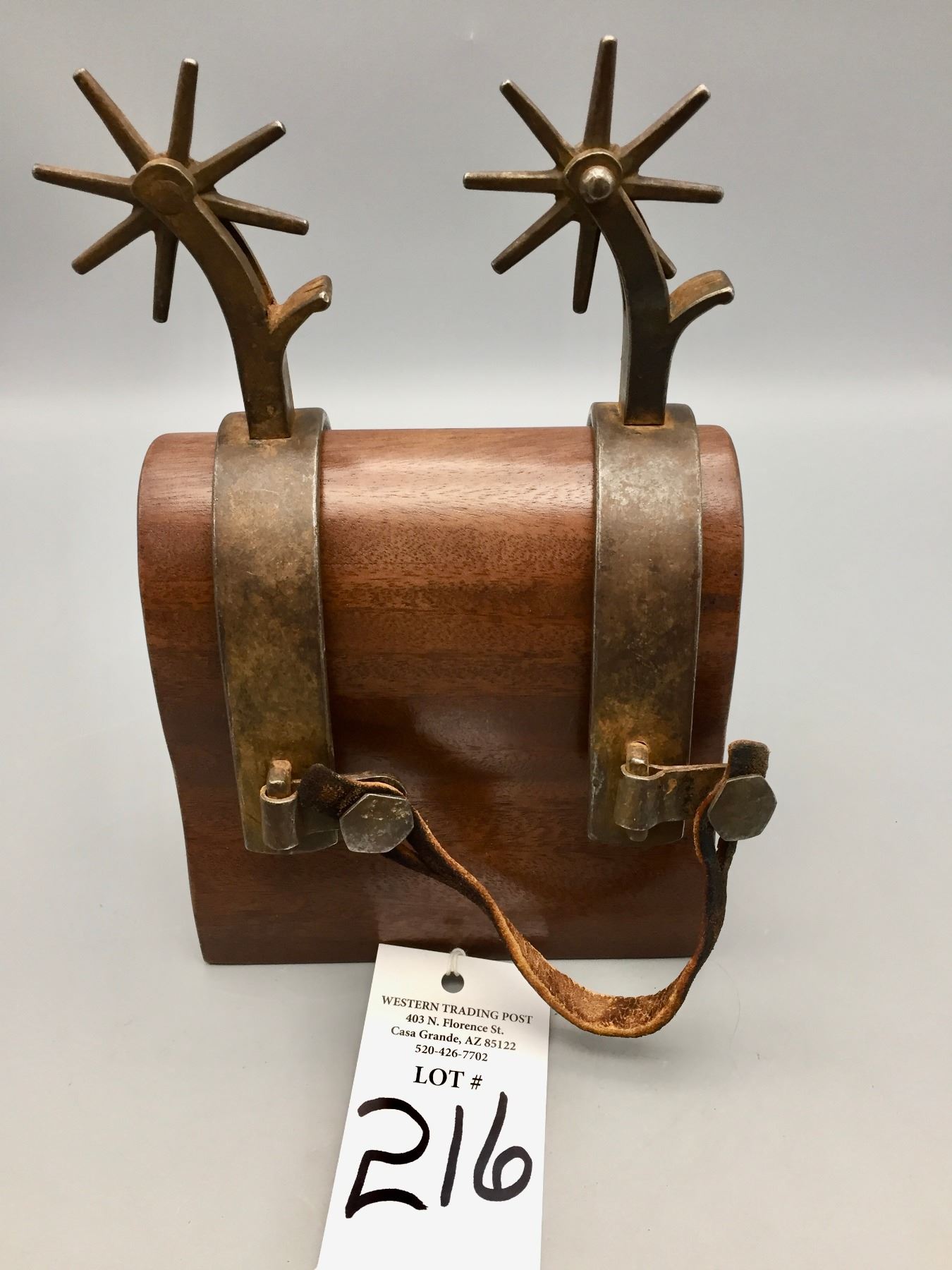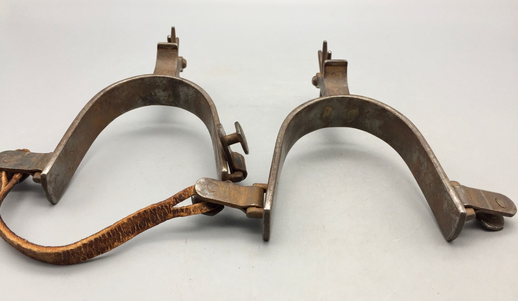 Description: Presented for sale in this lot is a large pair of cowboy spurs with chap guards. The spurs have a nice patina and look about them. Maker: Unknown, but vintage Crockett style. Approx. Age: Vintage. Size: 3-1/2” heel, 3-3/8” shank, 1” band. Condition: Good for their age, normal wear expected. Please look closely at the pictures - they are an important part of our description. Shipping: There will be a $5 handling / packaging fee for shipping this lot. The actual cost of postage will be added on top of that.