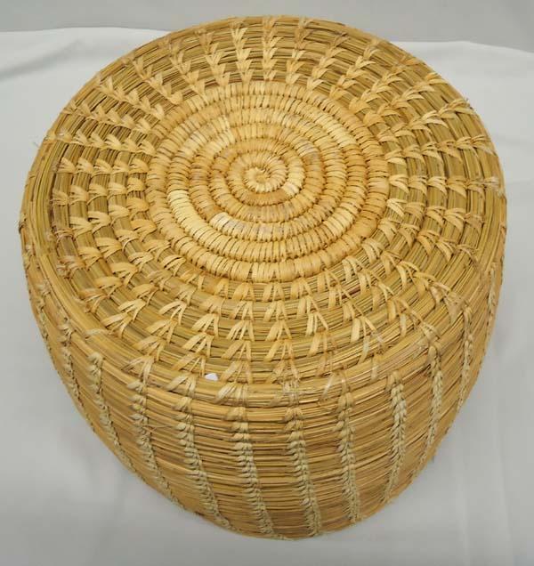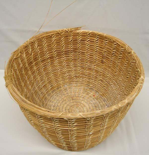 Large Papago Basket, measures approx. 10''H x 13 1/2''R. Some rim damage. SHI $35.