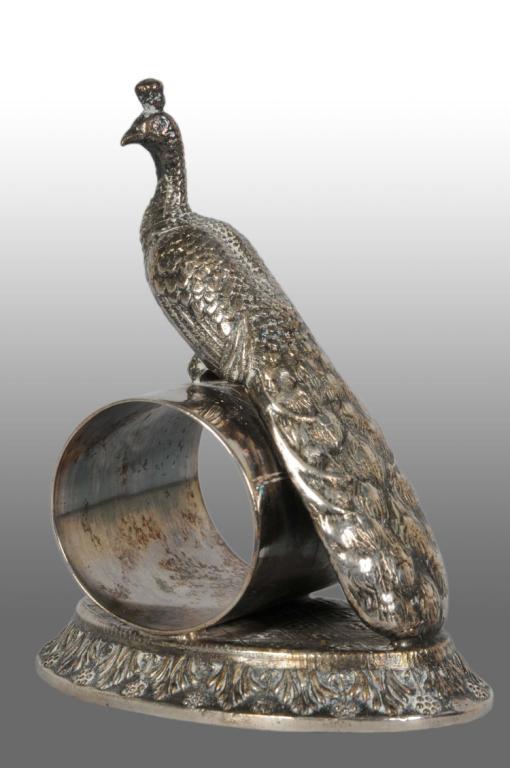 Depicts peacock with tail extending to oval raised base. No manufacturer's name or number. Condition (Very Good).
