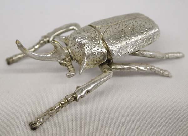 Large Pewter Rhinoceros Beetle, measures 4''L x 1.5''H x 2''W