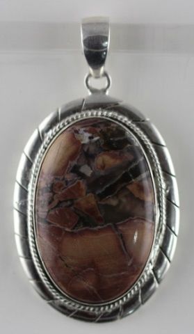 Sterling Silver pendant with Large Picasso Jasper stone set in oval setting with Knifed edges