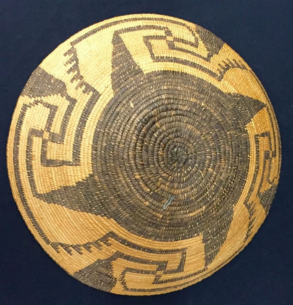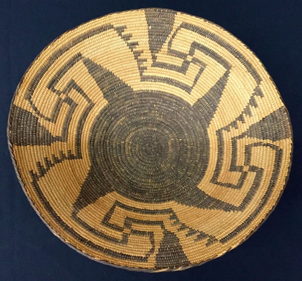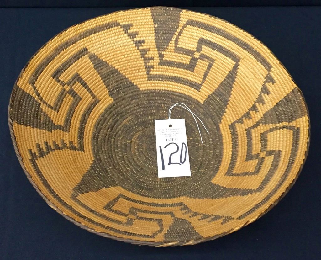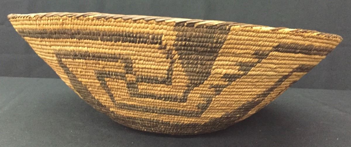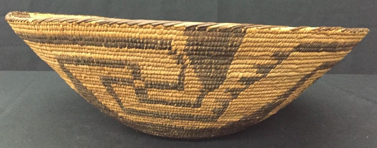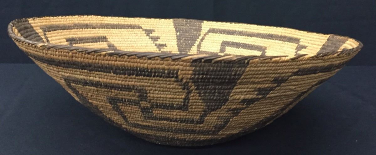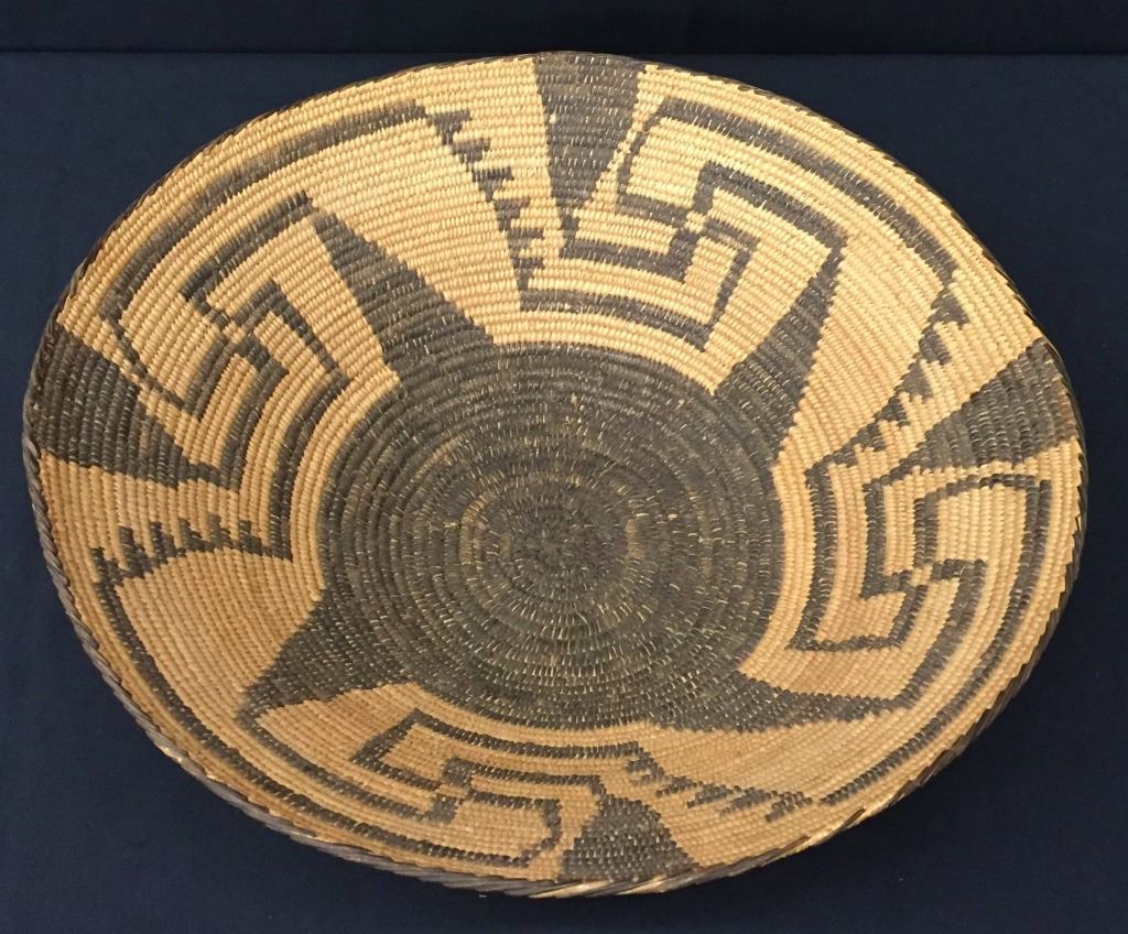 This large basket measures 16.5” across by 6” deep. Nice condition for its age with no major damage or stitch loss present. Please look closely at pics - they are an important part of our description. Shipping: There will be a $10 handling / packaging fee for shipping this lot. The actual cost of postage will be added on top of that.