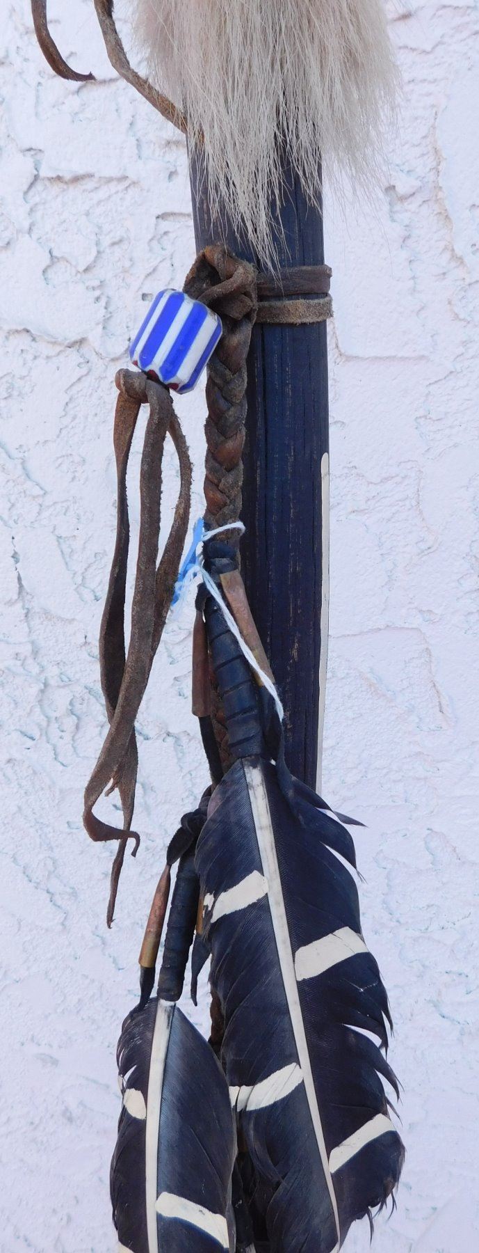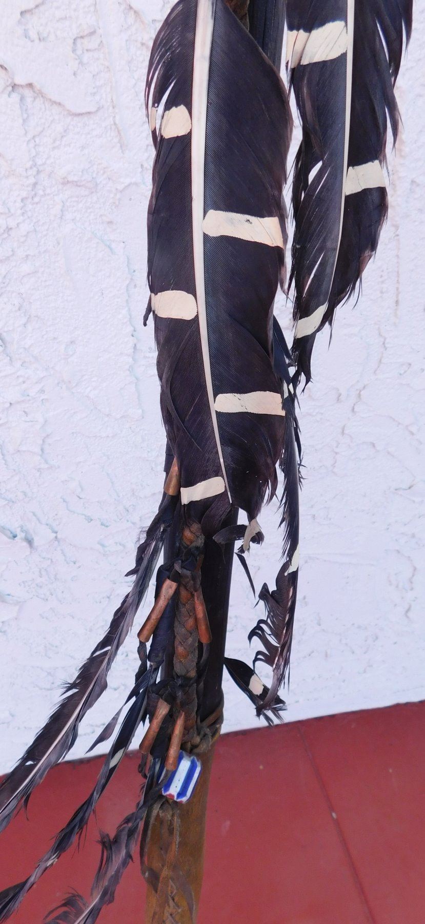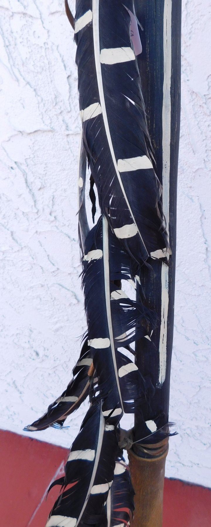 Large Plains Lance, 20th century item. Made of steel, rawhide, wood, beads, feathers. The item measures 75" x 2.5". Dakotas. Not a toy! Condition: Some wear, see images. Shipping: $65.00 USA estimate only, due to length, w/insurance and signature.