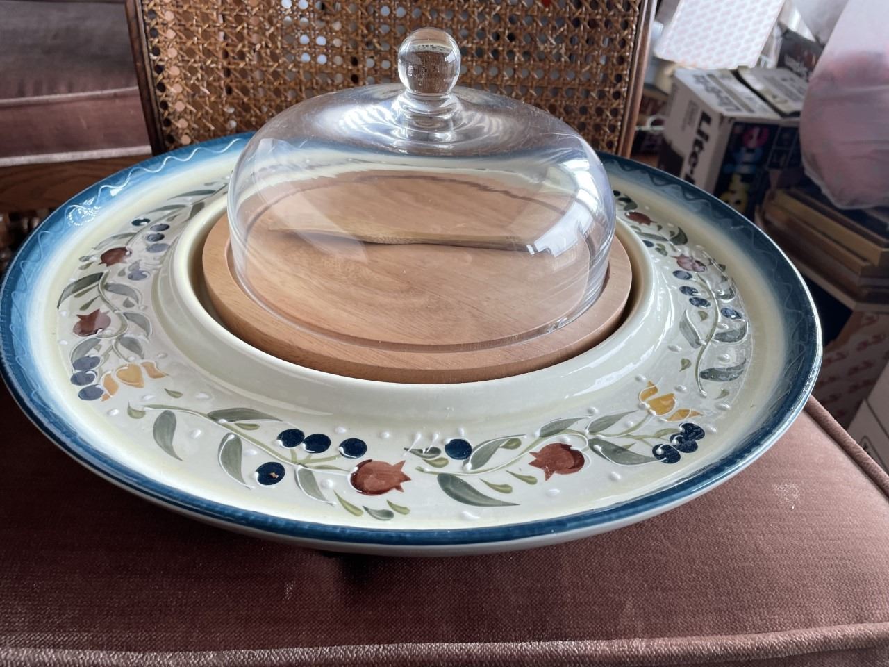 Made by Landis International. Large Platter with Cheese Tray , Knife and Lid