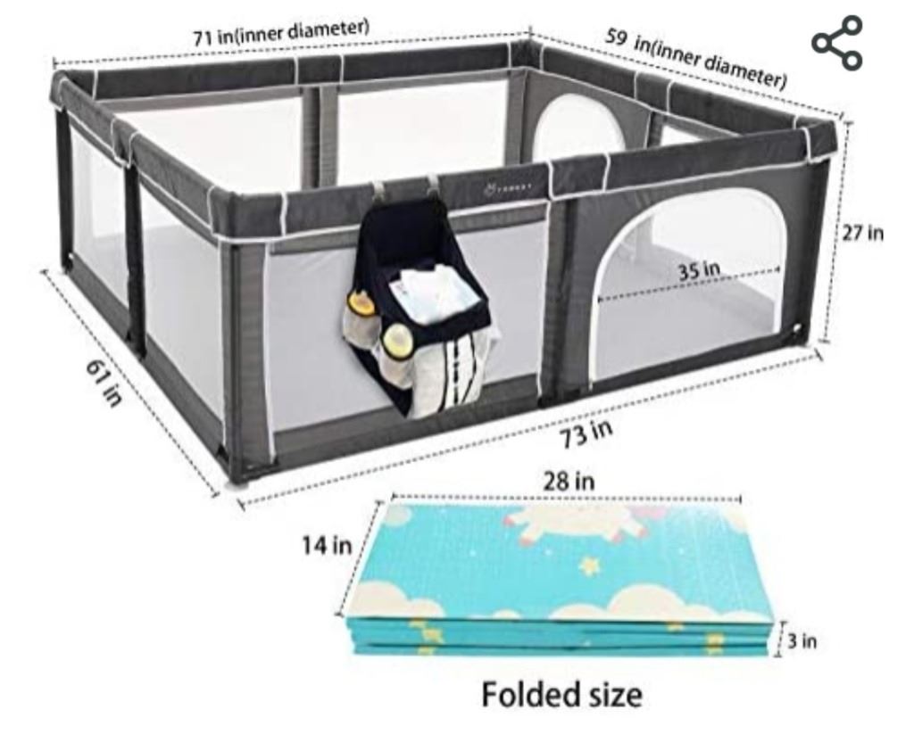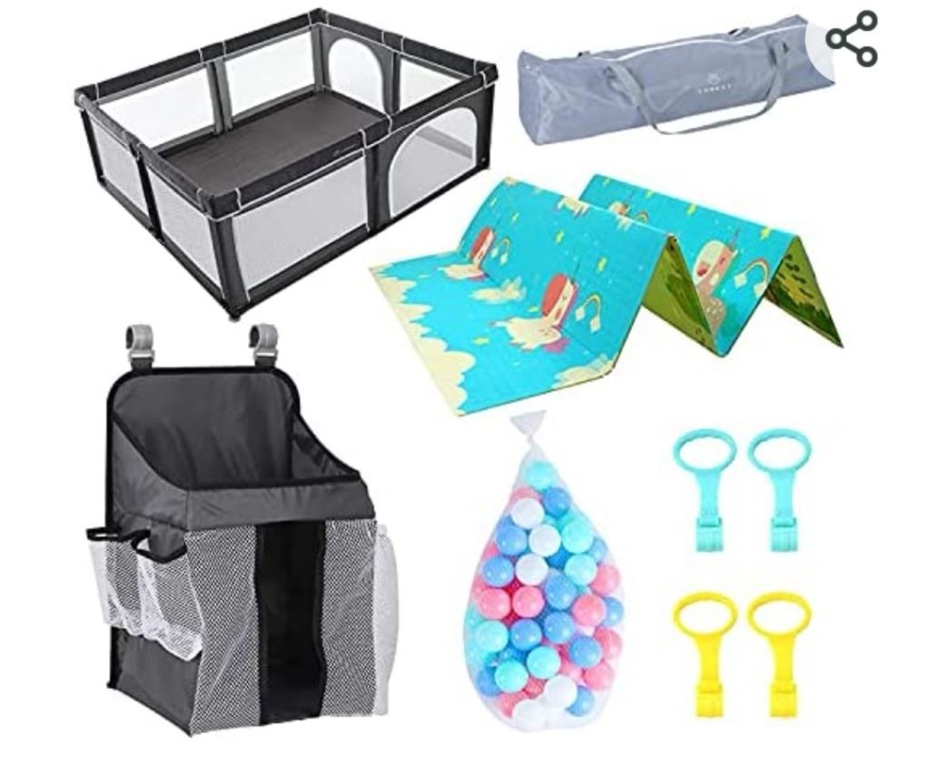 This playpen by yobest comes to you new in damaged box. Box opened to verify all contents present and stock photos used, see photos for dimensions. Yobest Baby Playpen, Playard Kit Includes