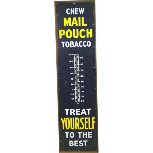 Large Porcelain "Mail Pouch" Thermometer Adv Sign 20 x 72 " very good condition Has a wooden frame