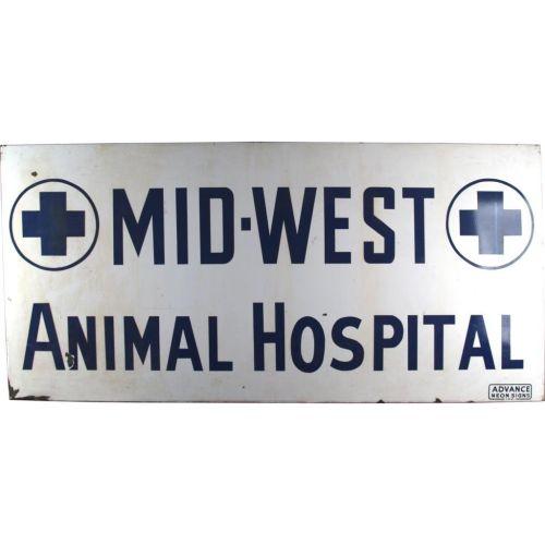 Large Porcelain Sign "Midwest Animal Hospital" 34 x 72 "