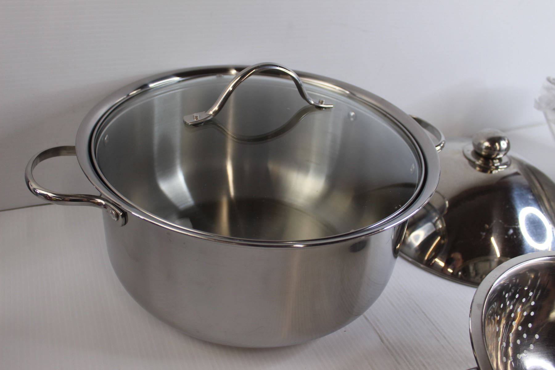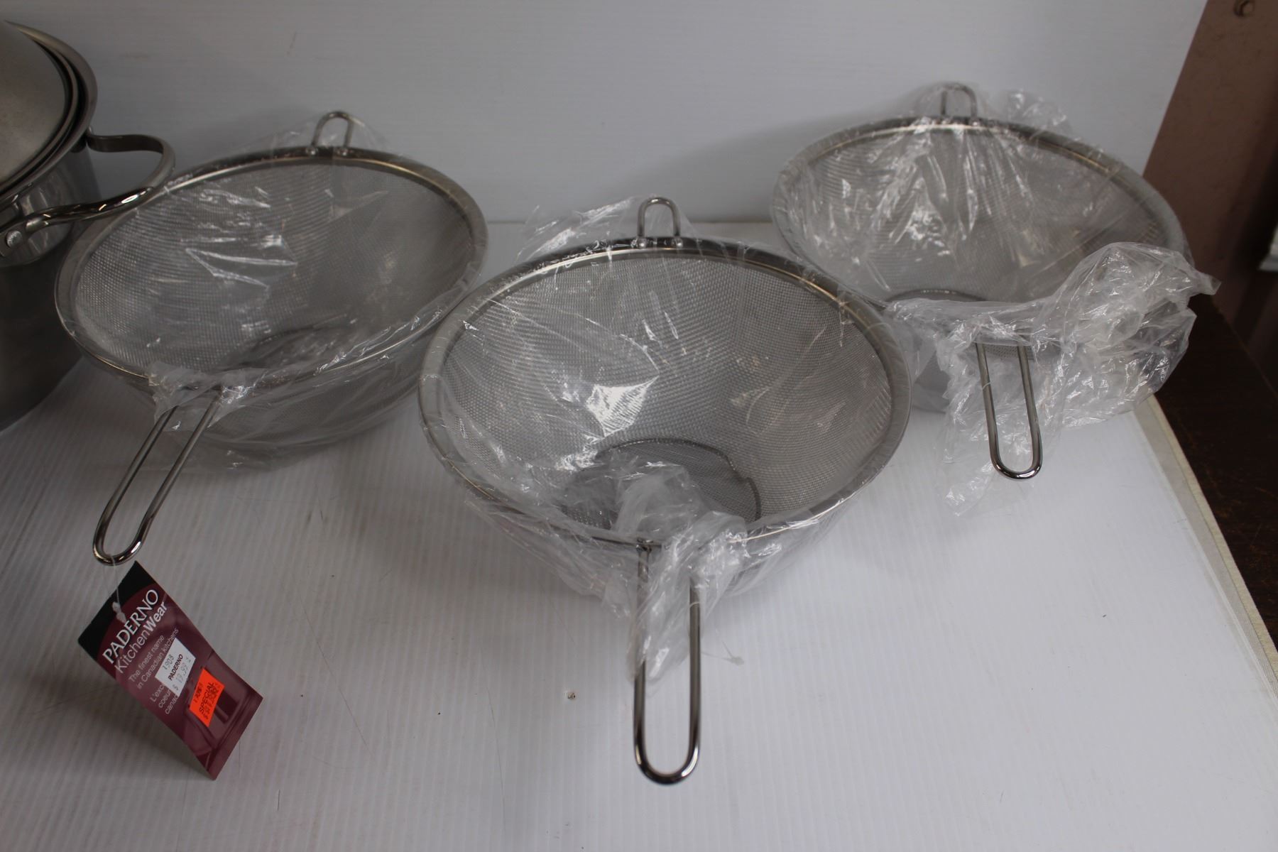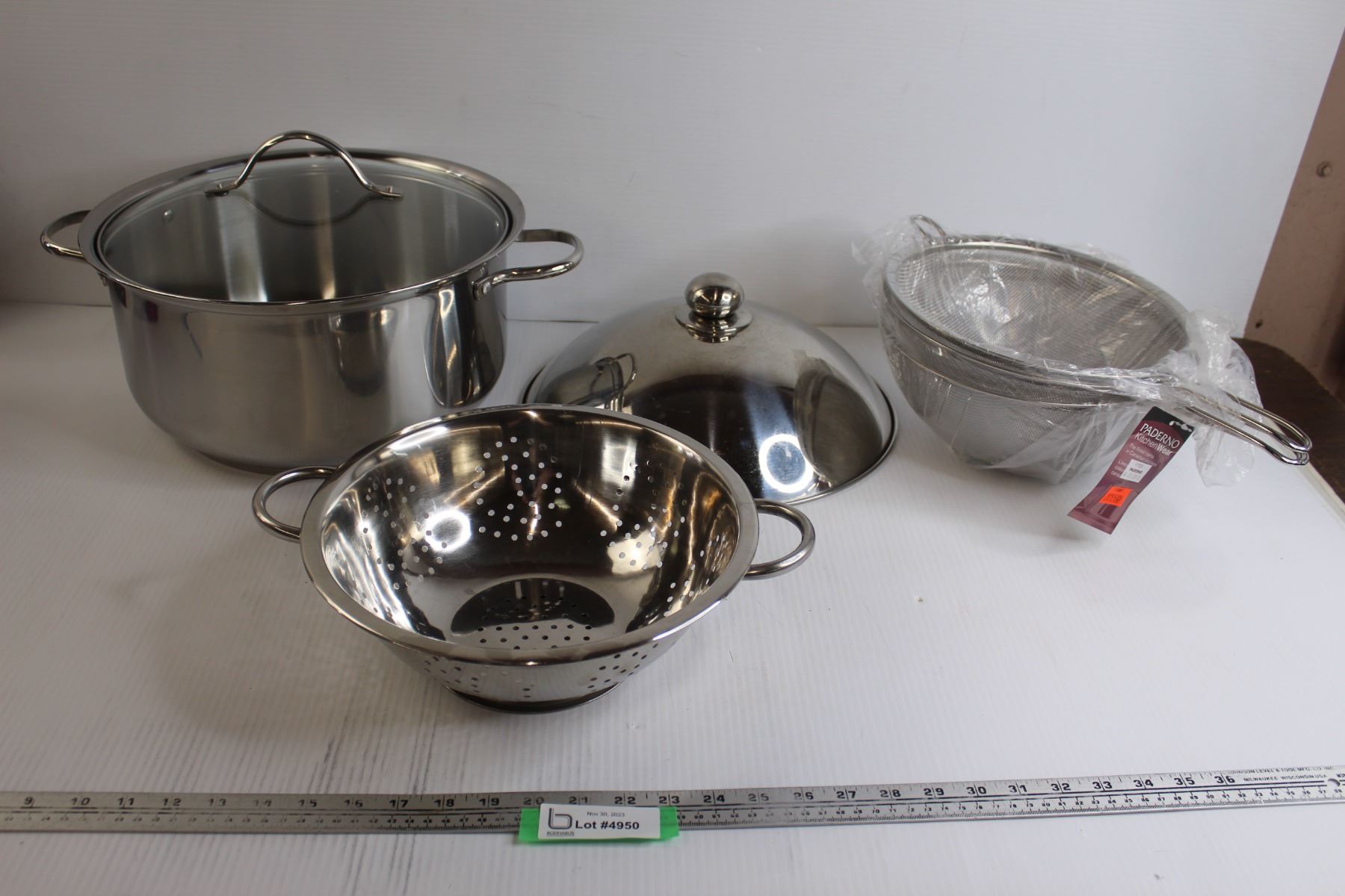 Large Pot with Lid, Colander, Extra Pot Lid, (3) Sifters