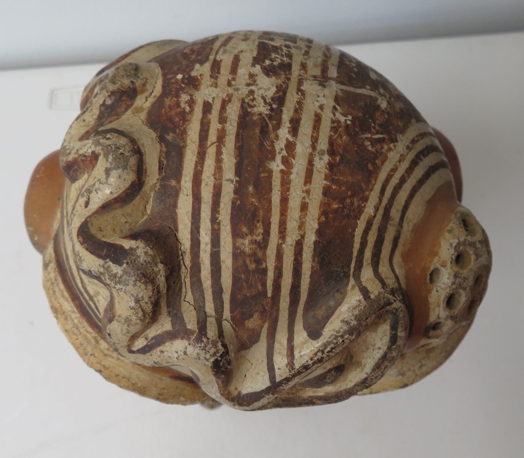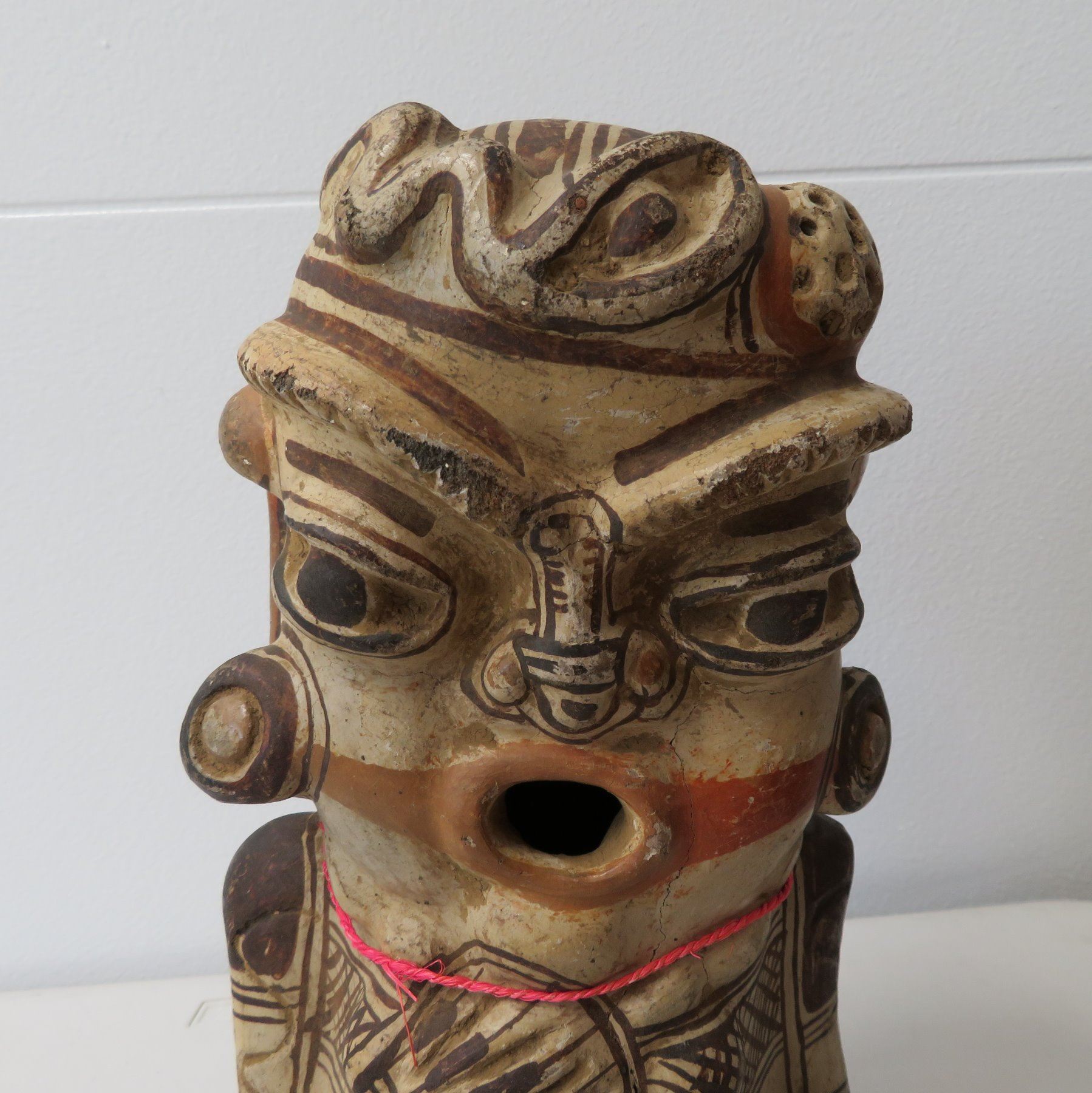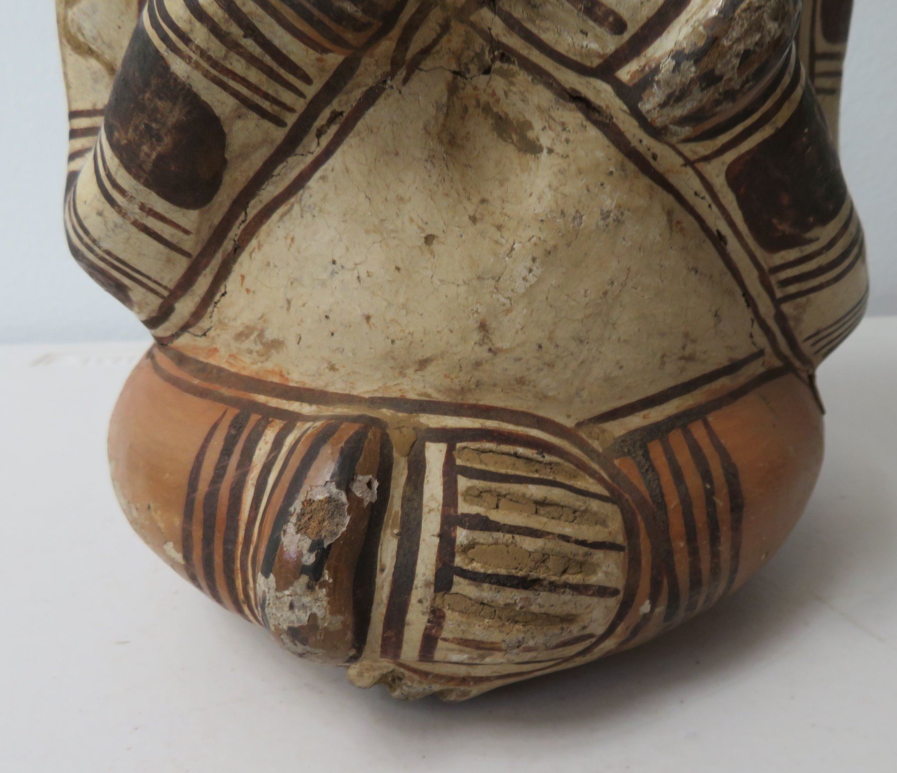 Large Pre-Columbian Figure, pre-Columbian item. Made of clay, the item measures 11" x 6" x 6". Costa Rica. Condition: Good, see images. Shipping: $42.50 w/insurance and signature, due to size and weight, double-boxed.