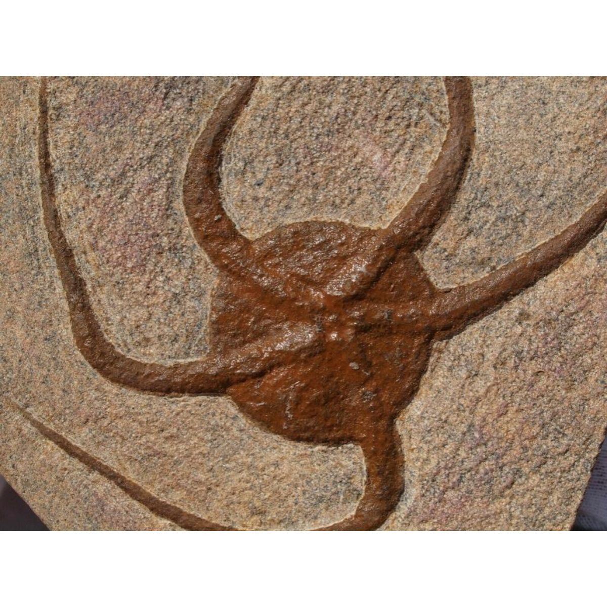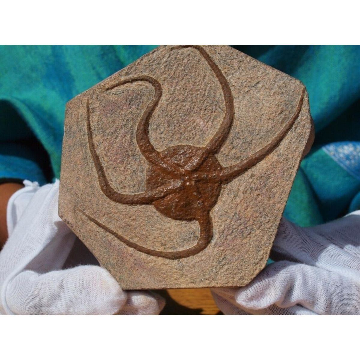 Prehistoric ( 150 million years old ) from the Upper Jurassic Period, large size Starfish Fossil, Geocoma Carinata, from Morocco. 5" X 4 1/2" X 5/8" thick. Well defined display specimen. Â