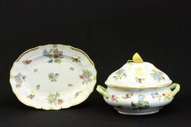 Platter approx. 16 1/2" x 12 1/2". Tureen approx. 14" W x 10 1/2" H.