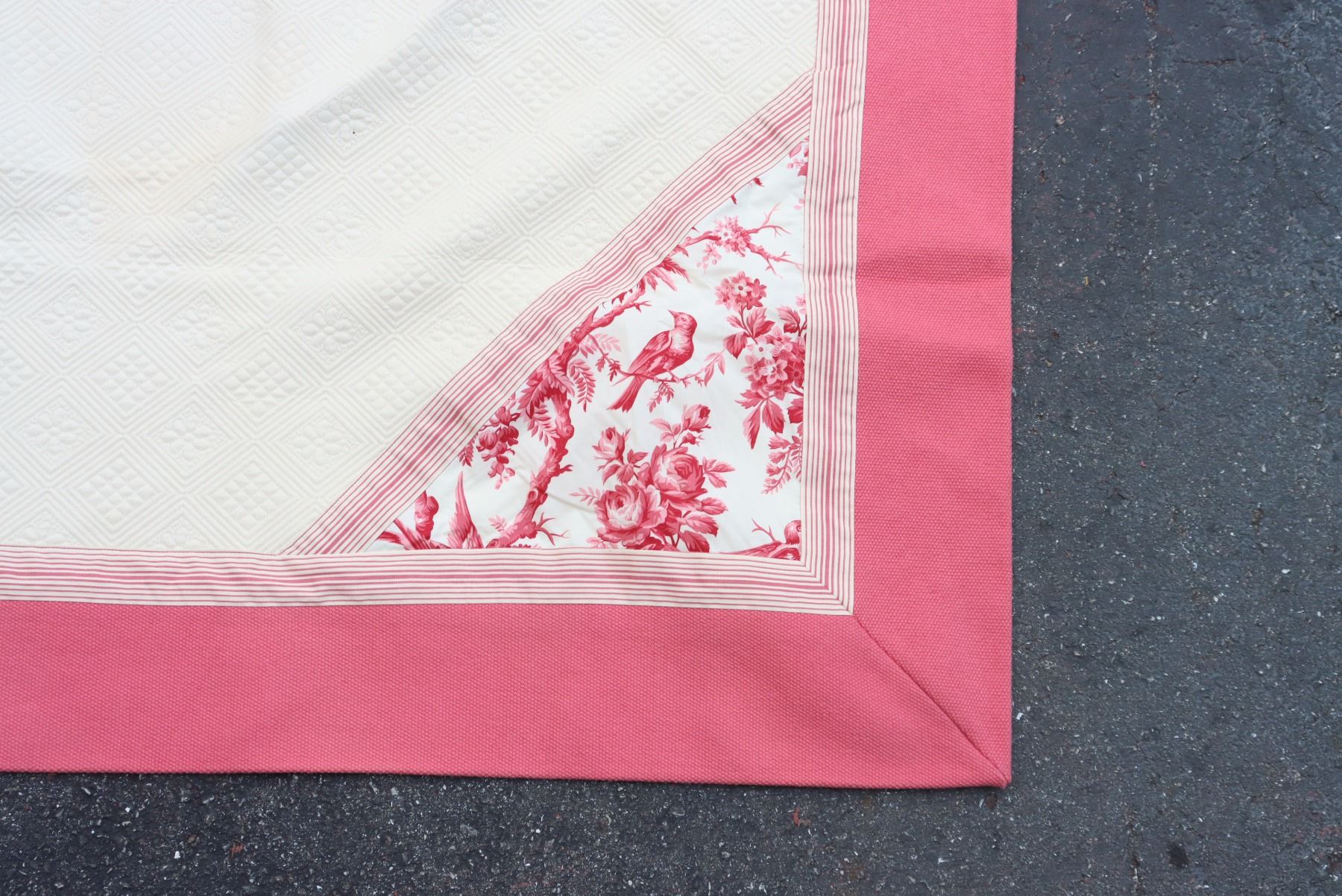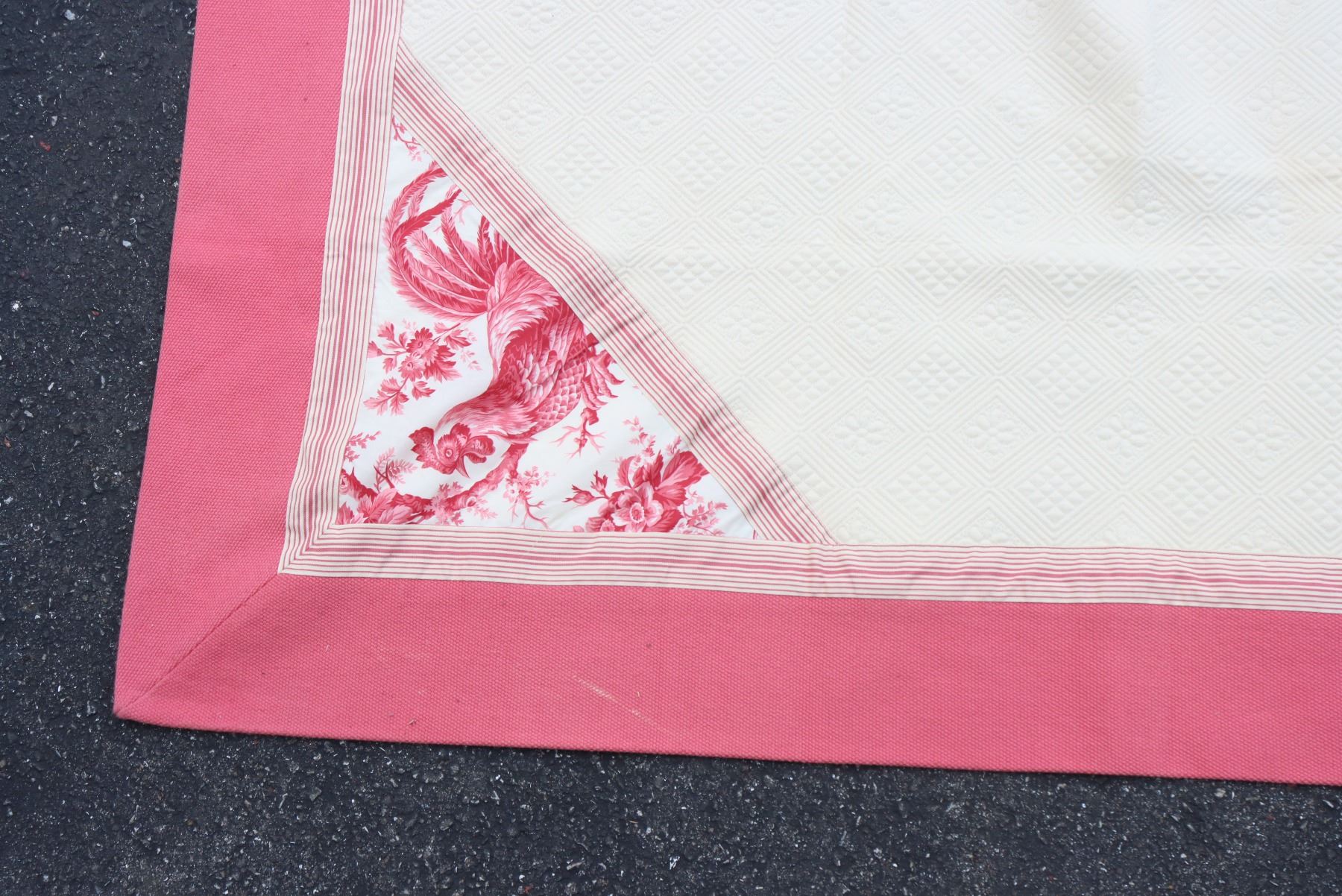 Provenance: Adrienne Vittadini & Gigi Vittadini, Southampton Estate. arge Pink Quilt with Bird and Rooster Design in each corner.