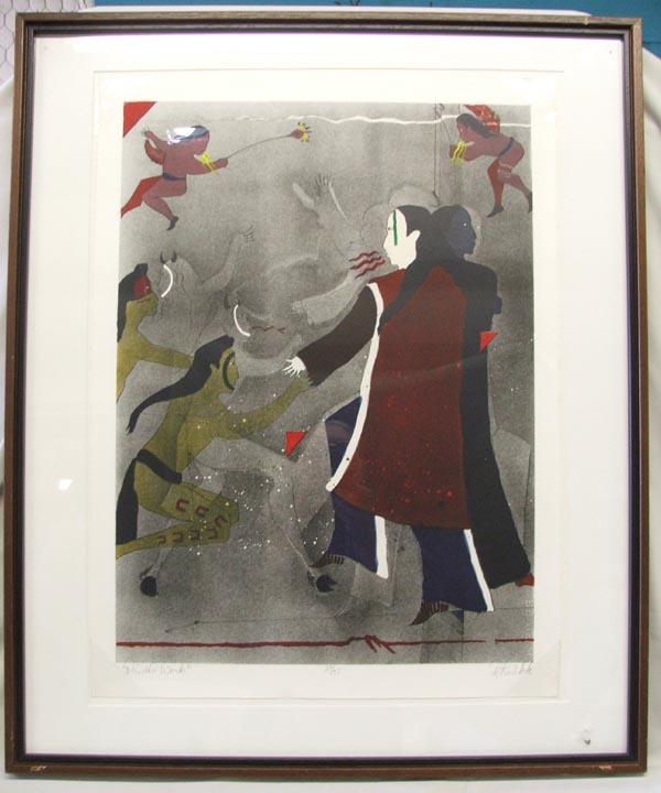 Large Randy Lee White Signed Numbered Print. Framed in a wood frame, matted, under glass. Numbered 27/75, signed in pencil. Print Documentation on the back. Measures approx. 30'' x 22''. SHI $125.