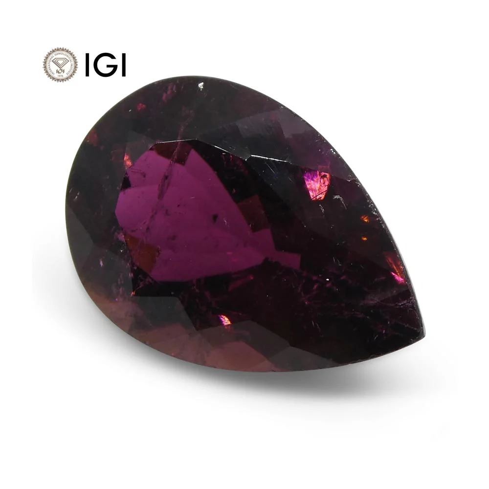 Majestic VVS1 Eye Clean 7.68 Ct Purple Tourmaline measuring 15.86 x 10.99 x 7.44 mm with a brilliant pear cut. Showcases a powerful dark hue and tone. Ready to mount and be admired!!! Origin: Brazil. Treatment: None. Please see the certification for additional information.