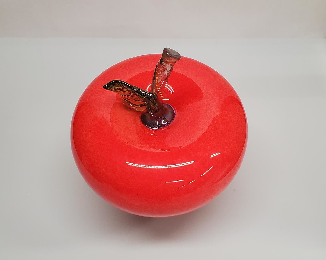 Red apple with golden stem, this piece measures 11" tall and 7" diameter.