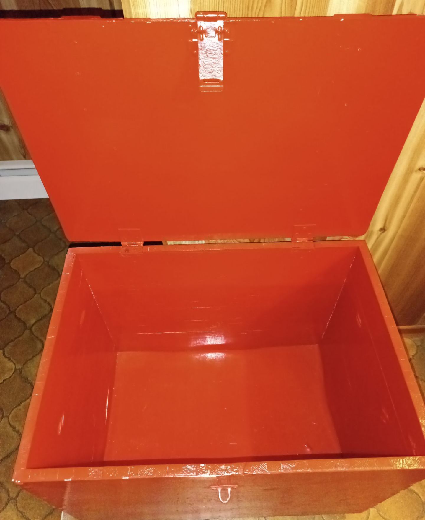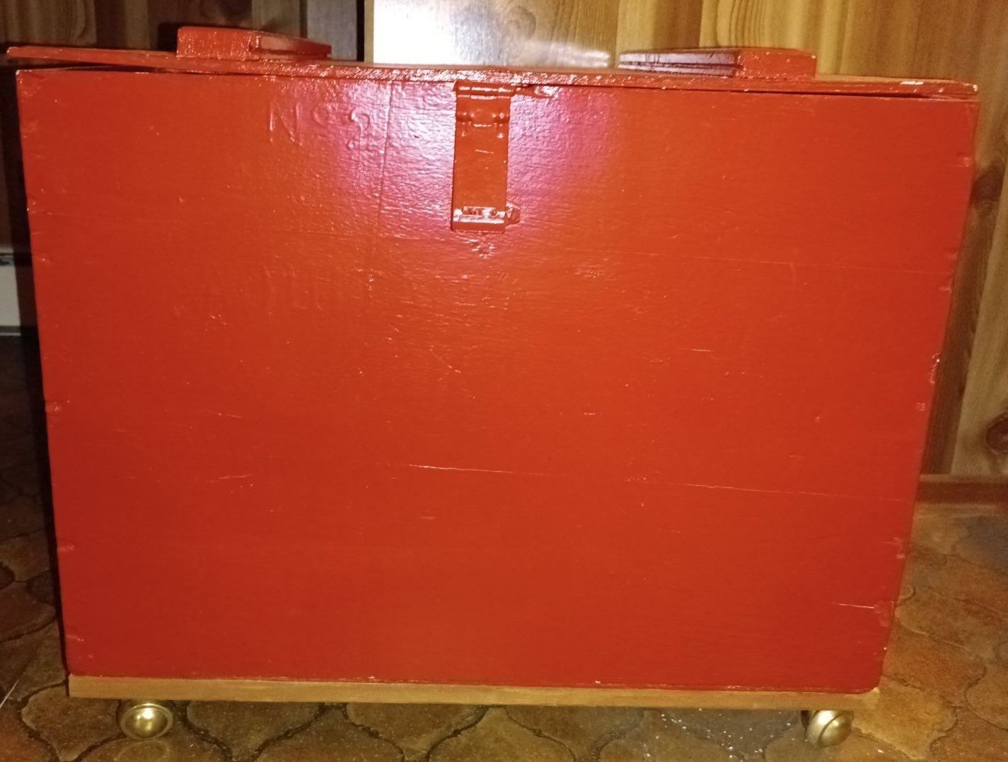 Large Red Storage Box on Castors Wooden Box on Wheels