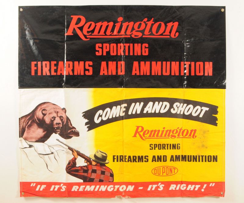 Large Remington Banner Half Plastic and Half Cloth Measures 54"x57"
