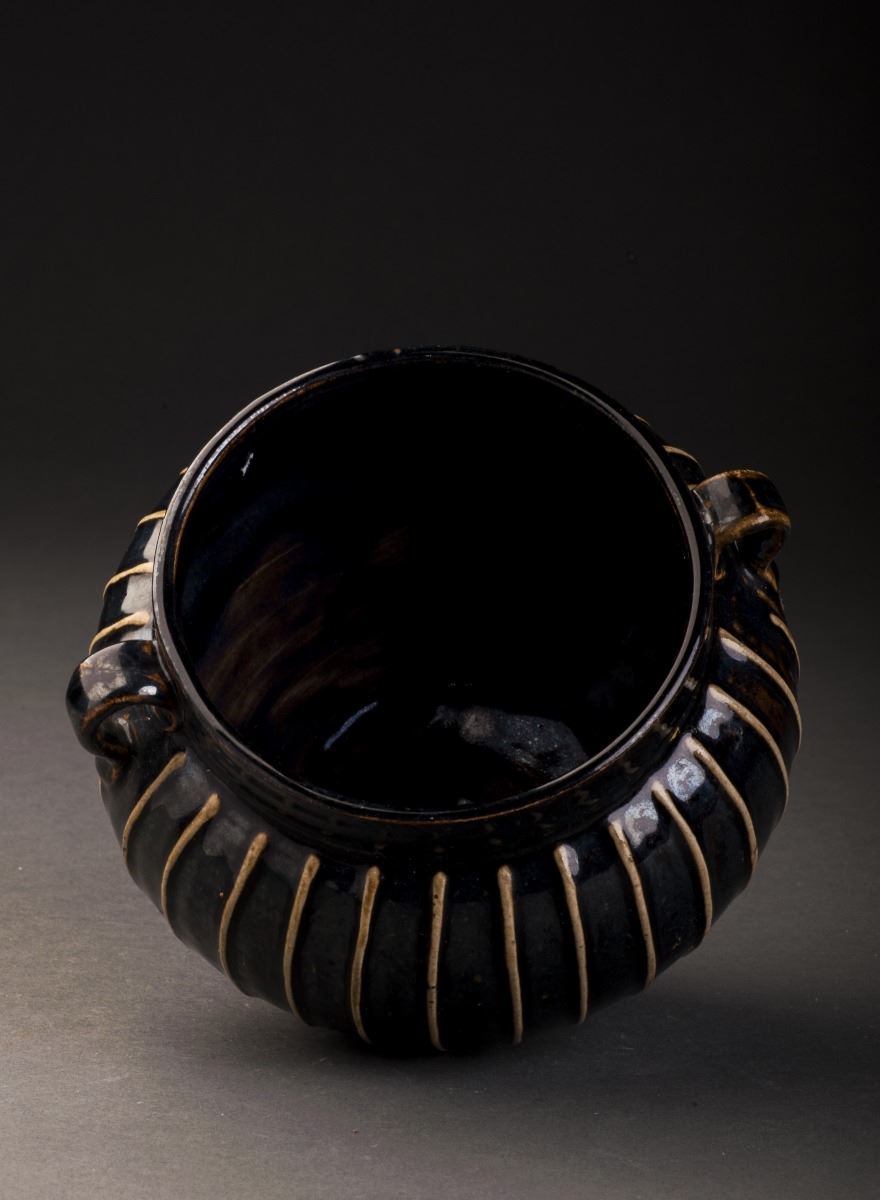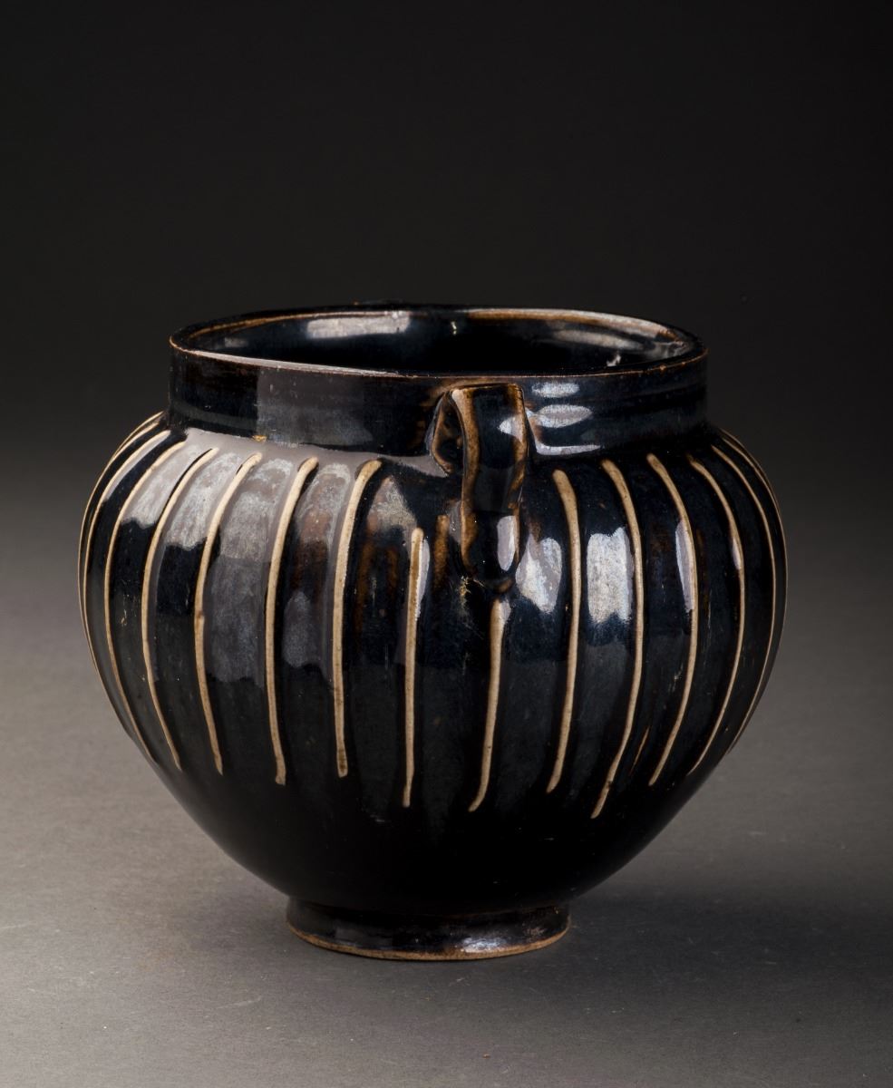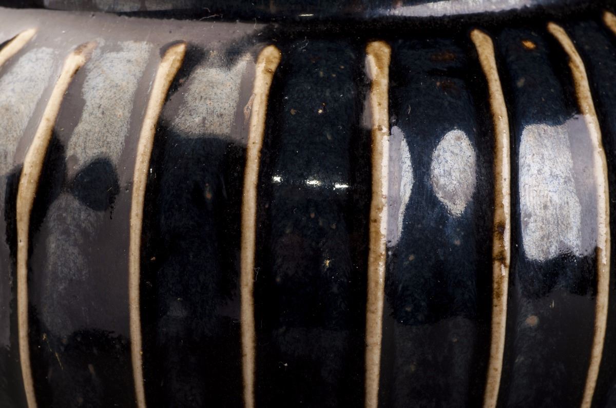 The Attractive Ribs Adorning This Jar Were Carefully Applied In Slip Onto The Surface Of The Vessel Before The Application Of Glaze. During Firing The Glaze Pulled Away From The Ribs To Result In A Striking Contrast OfDelicate White Lines Emerging From A Glossy Black Ground.
