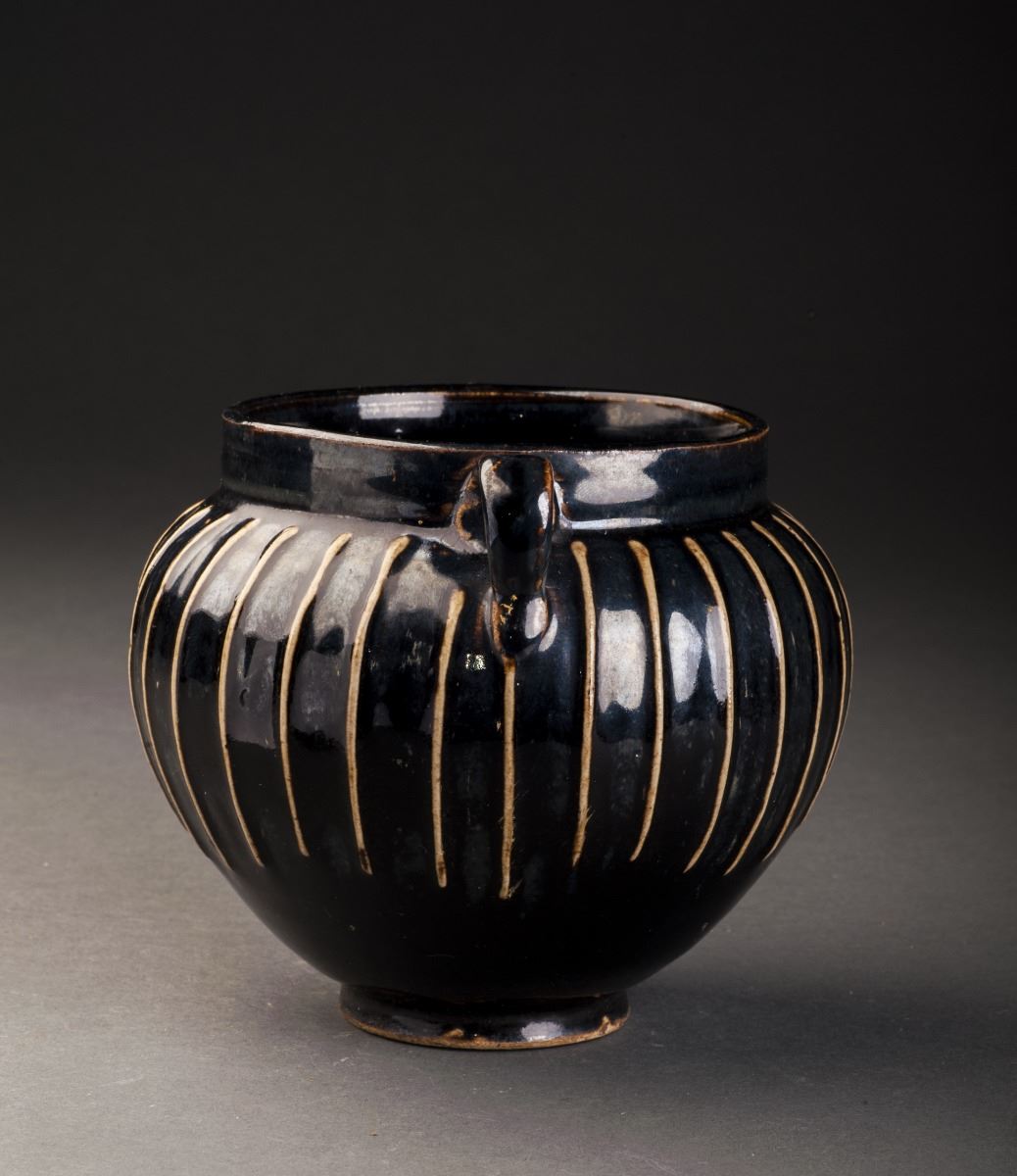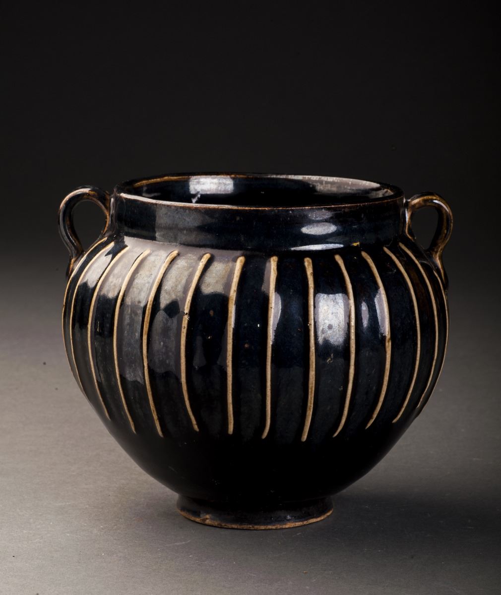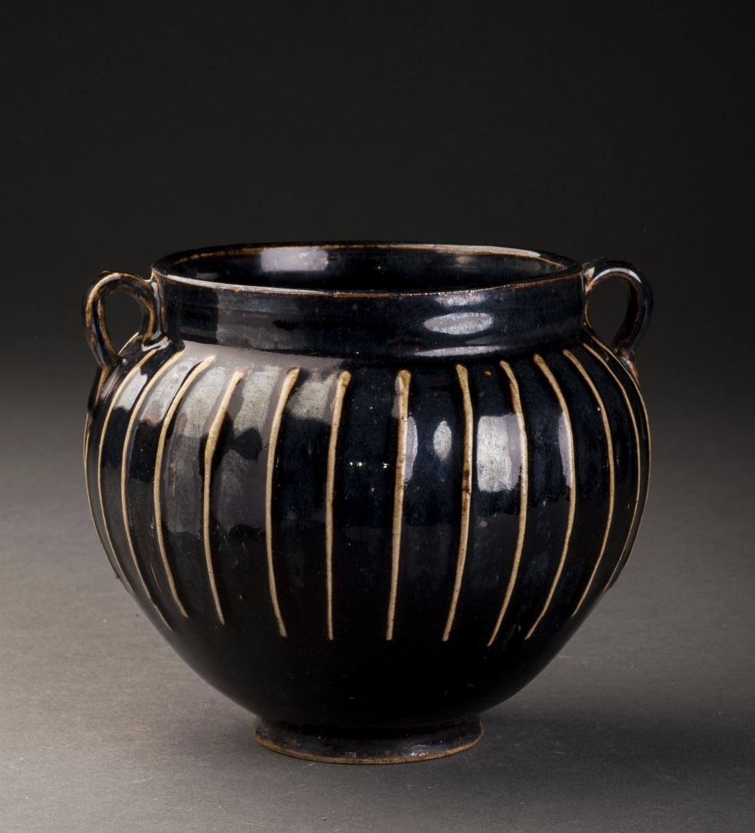 The Attractive Ribs Adorning This Jar Were Carefully Applied In Slip Onto The Surface Of The Vessel Before The Application Of Glaze. During Firing The Glaze Pulled Away From The Ribs To Result In A Striking Contrast OfDelicate White Lines Emerging From A Glossy Black Ground.