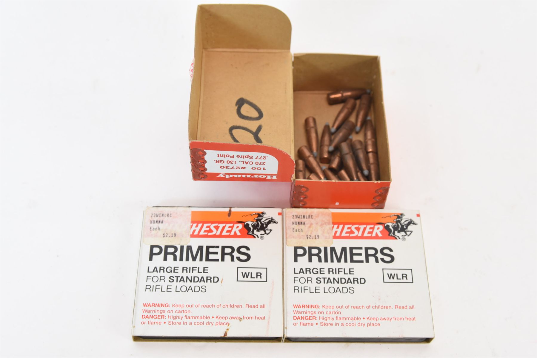 119 Winchester large rifle primers and 20 Hornby 270 cal 130gr .277 spire point projectiles.