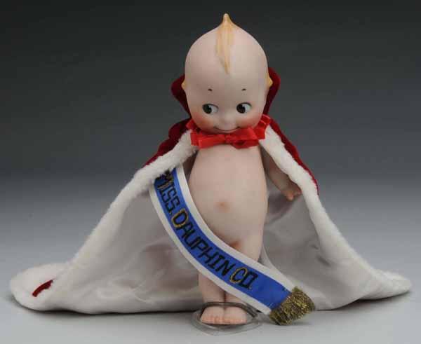 Description Germany, Ca. 1915. Marked "O’Neill" on foot. All bisque Kewpie broken and glued across the top torso with hairline running up the back of his head. Condition (Fair). Size 10" T.