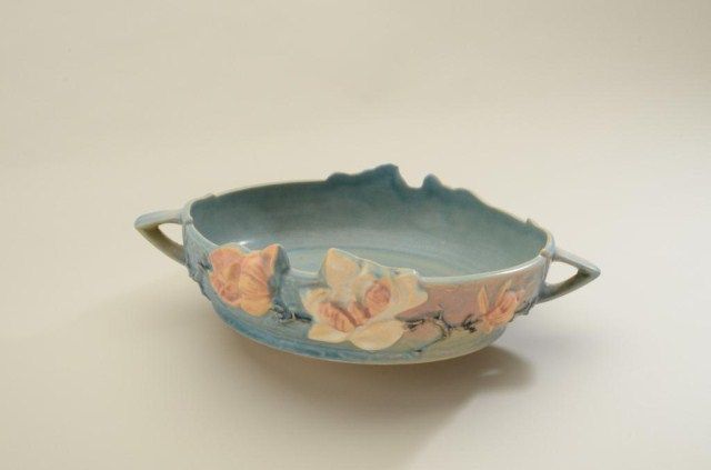 Large Roseville Bowl. Well marked approx. 13" across, very good condition, slight crazing and a couple small chips. Authentic. Est. $200-$400