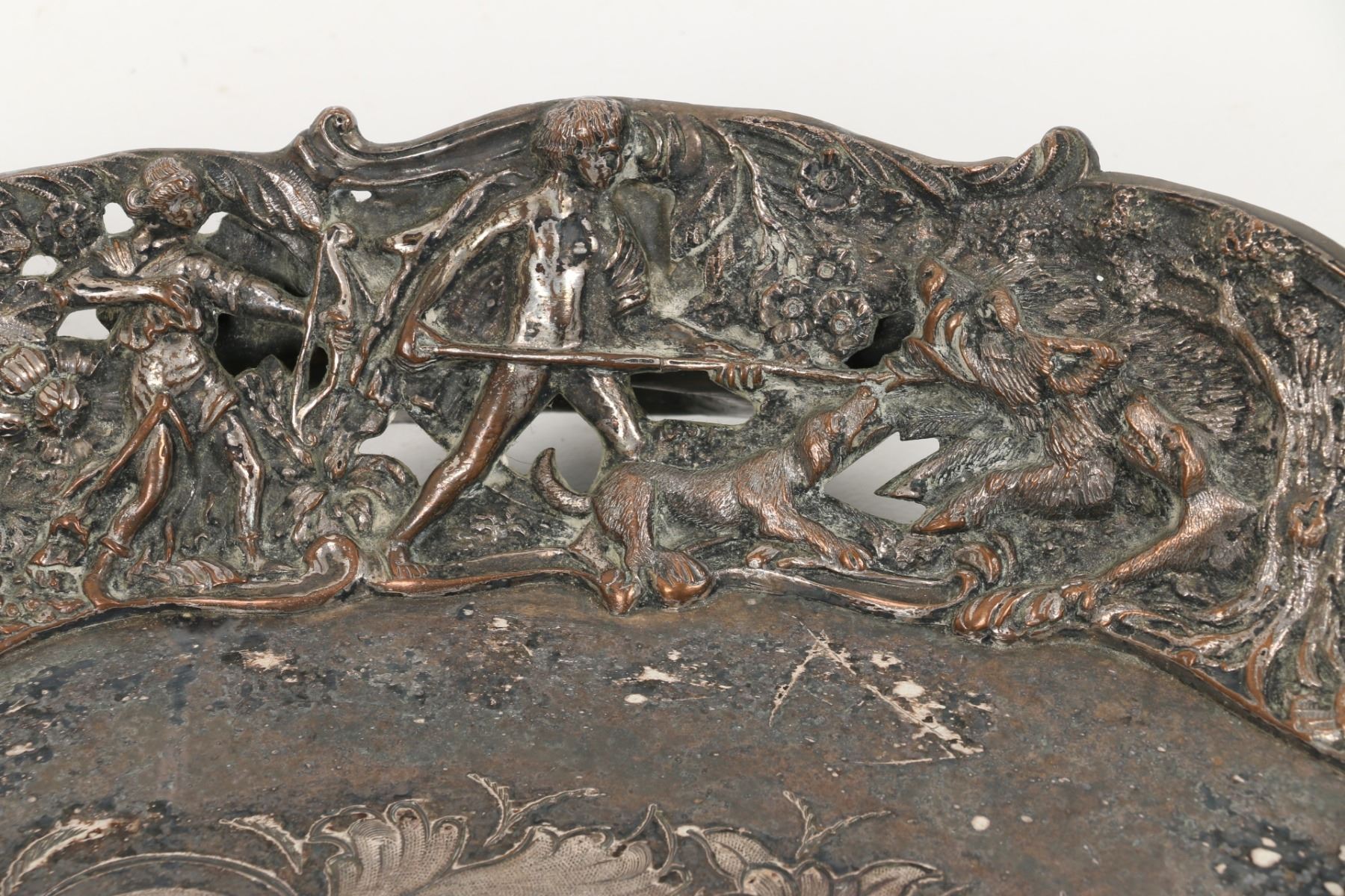 Lot 168 - Rising Sun mark, faces of Bacchus and female, woodland scenes and creatures, dolphin (Neptune) feet, on copper. Heavily tarnished. 25" dia. $200-300.
