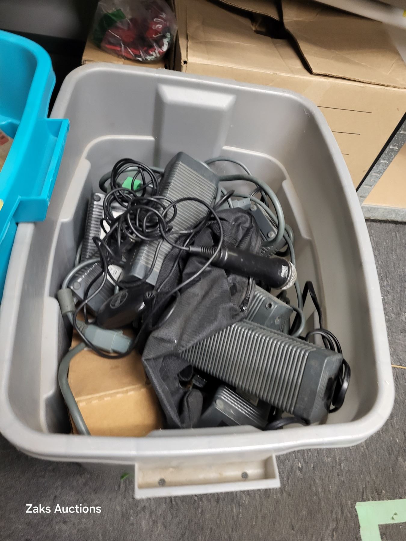 Large Rubbermaid Tote with Massive Amount (10?) of Xbox Power Supply + Hilti Charger +