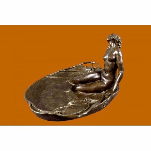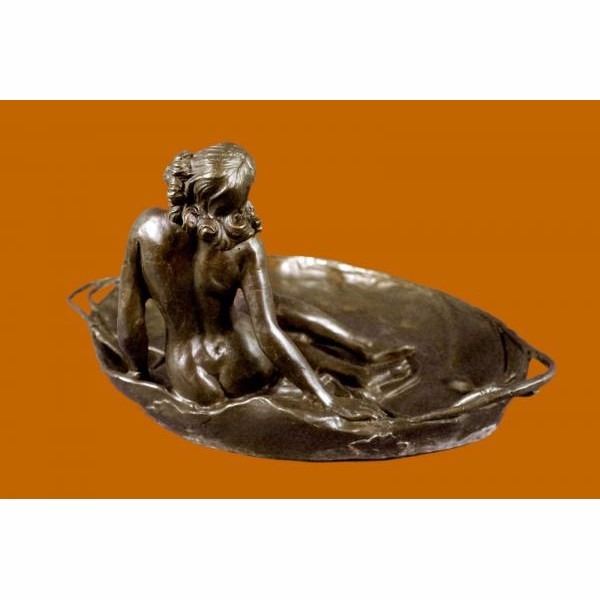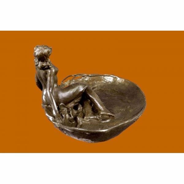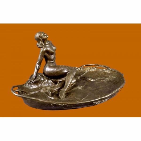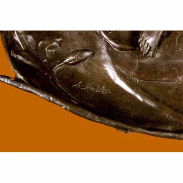 This beautiful sculpture can be used as a dish or Jewelry tray . Cast in high quality bronze, it weighs approximately 8 pounds and is 12" wide x 6" high. Anyone who knows and appreciates bronze sculpture will recognize the very special patina work on this piece; it is beautiful hand crafted real bronze signed Rubin. The two tone patina has been meticulously applied. Condition: This sculpture is in perfect condition. Bronze Dimensions :Height 6" x Width 12" Weight :8 LBS Inventory : 68XNCH2857C8686