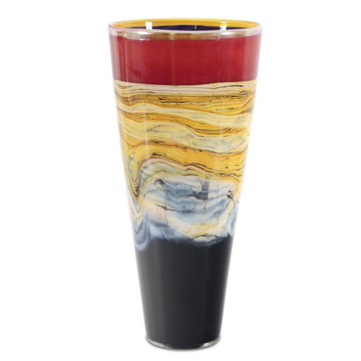 "Large Ruby Strata Cone" Hand Blown Glass Vase Sculpture, Hand Signed by GartnerBlade Glass.