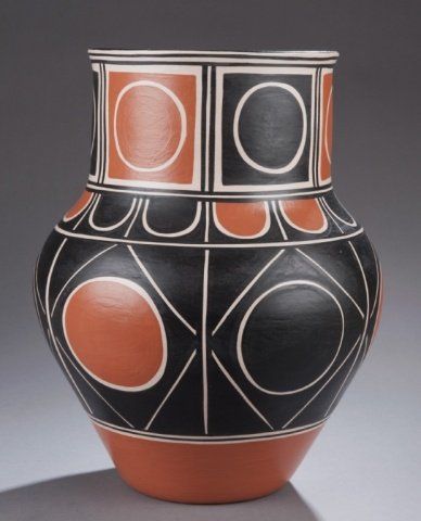 A large Santo Domingo pot signed Thomas Tenorio. Signed "Thomas Tenorio Kewa Santo Domingo Pueblo, NM 2006". 13"h x 10"d.