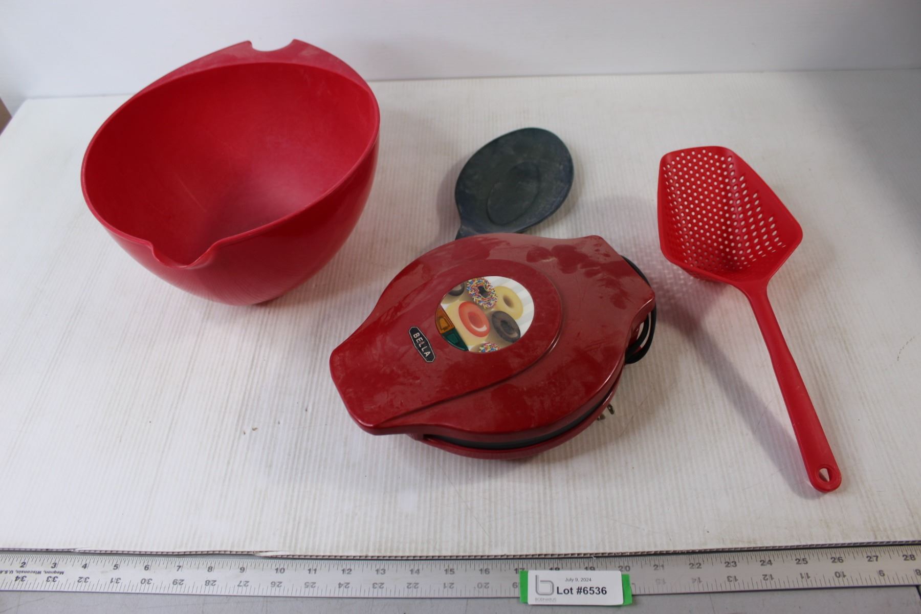 Large Scoop Colander, Mixing Bowl, Mini Donut Maker - Untested