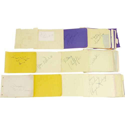 <B>Large Selection of Vintage Celebrity Autographs.</B></I> A set of approximately five dozen notecards, autograph album pages, and slips of paper with an assortment of signatures that includes Gary Cooper, Henry Fonda, William Powell, Jimmy Durante, Woody Herman, Yvonne DeCarlo, Gene Tierney, Van Heflin, John Garfield, and others. In overall Fine to Very Fine condition with mild wear and tanning.<BR><BR><b>Shipping:</b> Flat Material, Small (<a target="_blank" href="http://www.heritageauctions.com/common/shipping.php">view shipping information</a>)