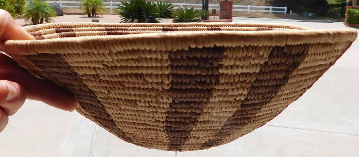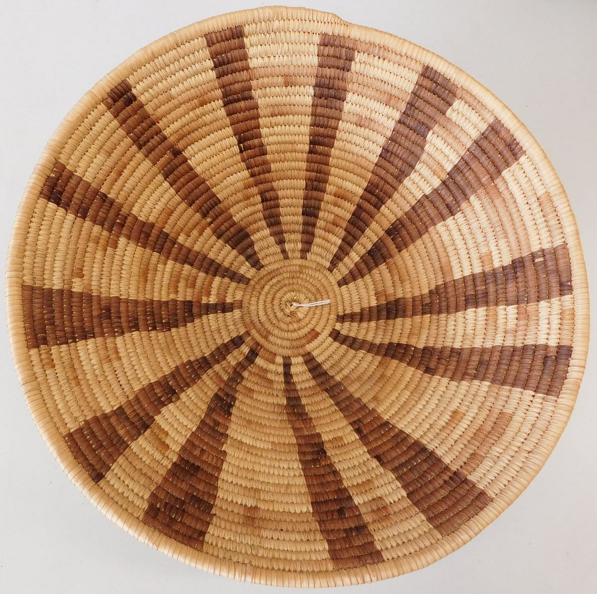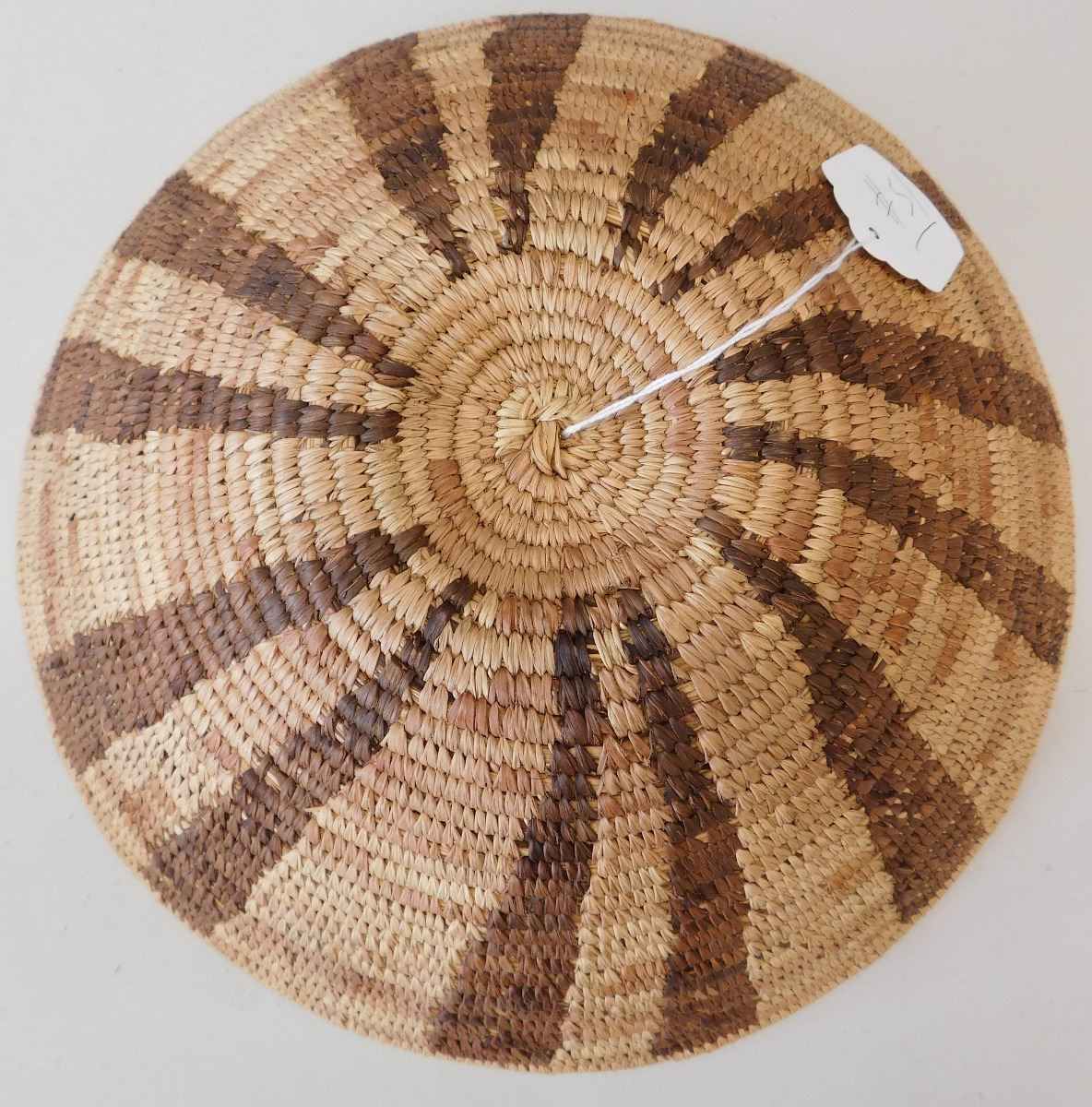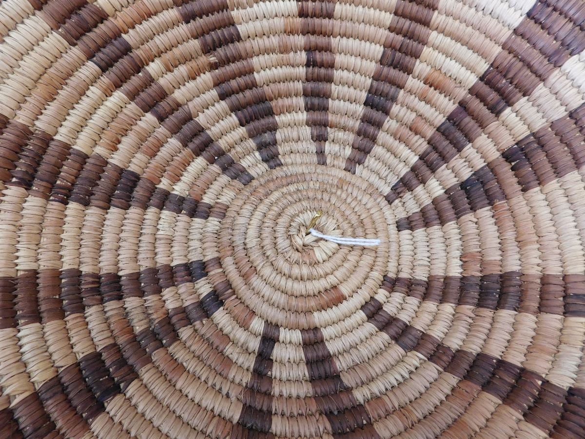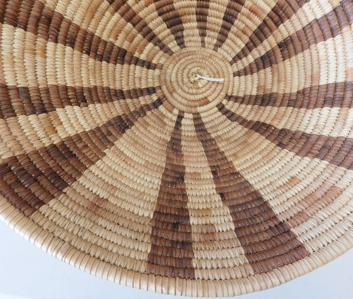 Large Seri Basket, measuring 4" x 13" and featuring a bold design. Circa 1950s, this item is made from grass. Condition: Very good condition, see images. Shipping: $25.50