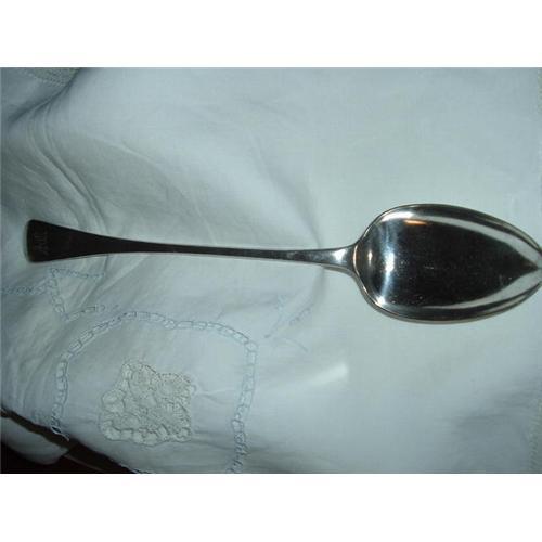 This antique silverplate Serving Spoon measures 12" long.  The bowl is 4" by 2-1/4". The marks are impressed, with the number 1 in a sheild.