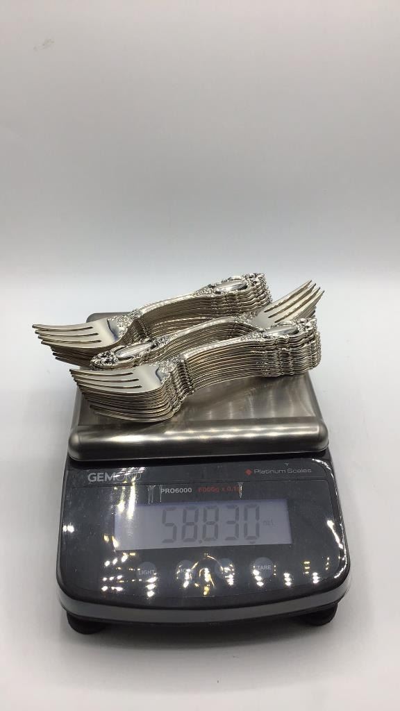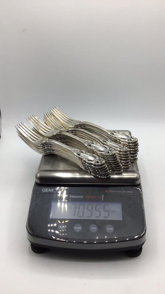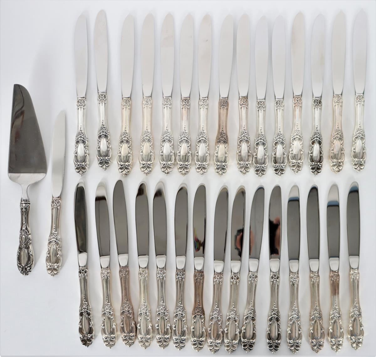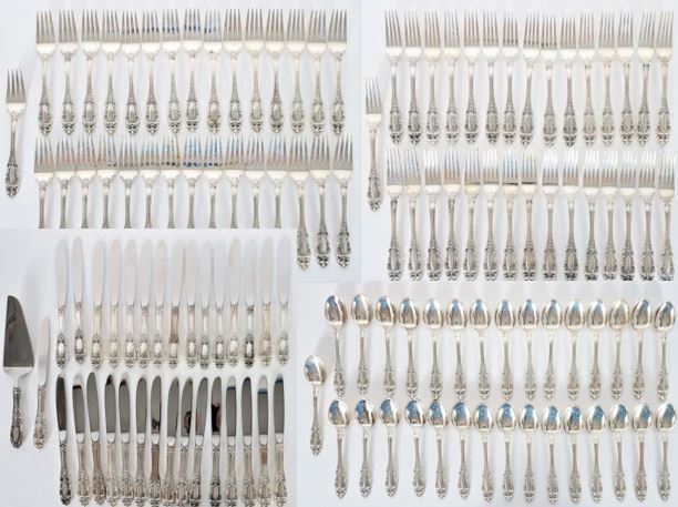 TOTAL approx weight including knives and pie server at half oz: 187 OZT.
