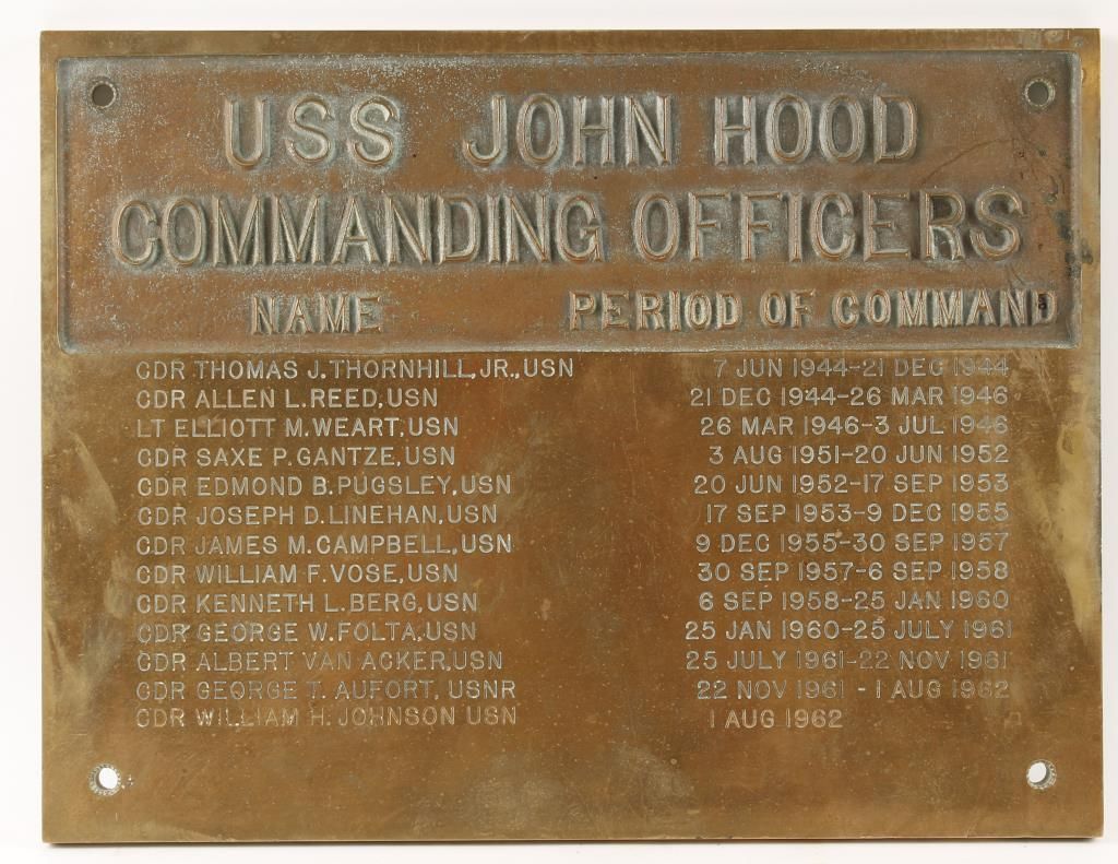 Commanding Officers listed names dating from 1944-1962. Heavy brass construction.
